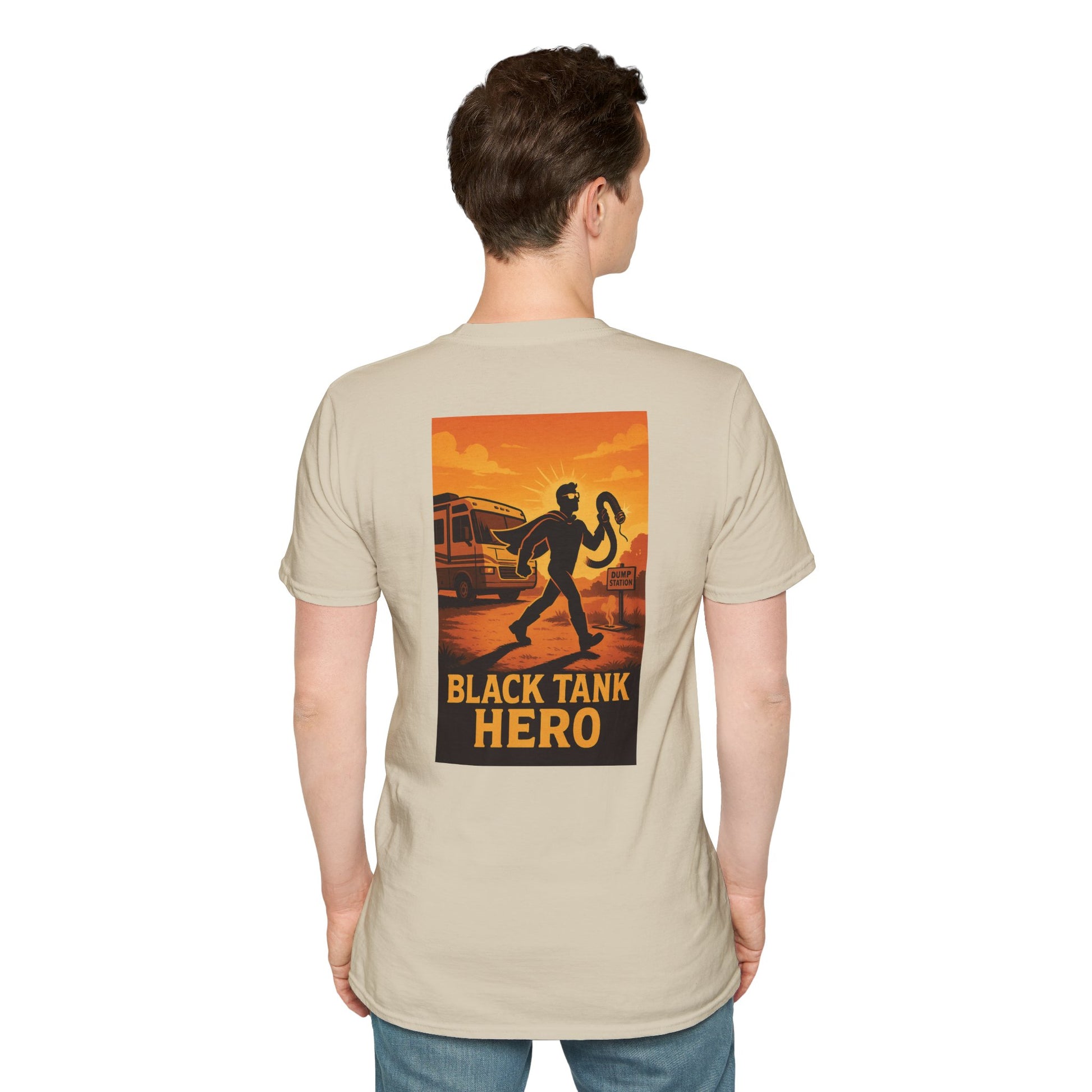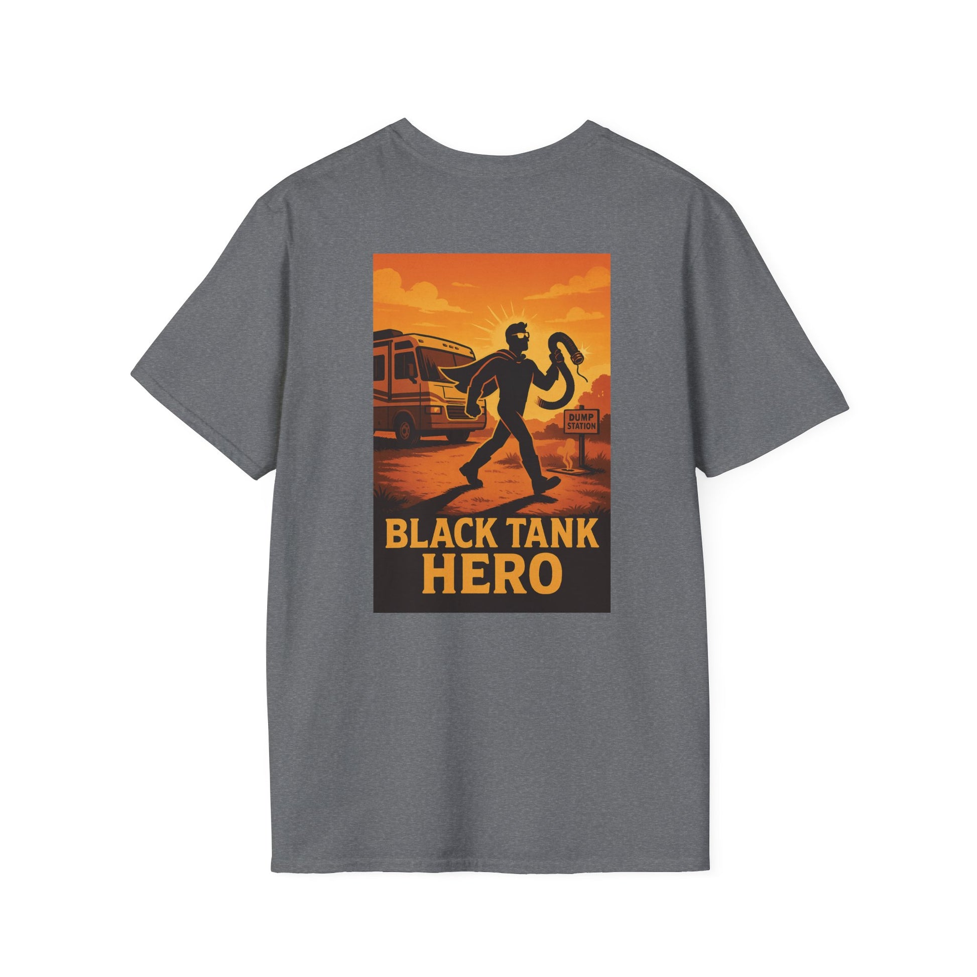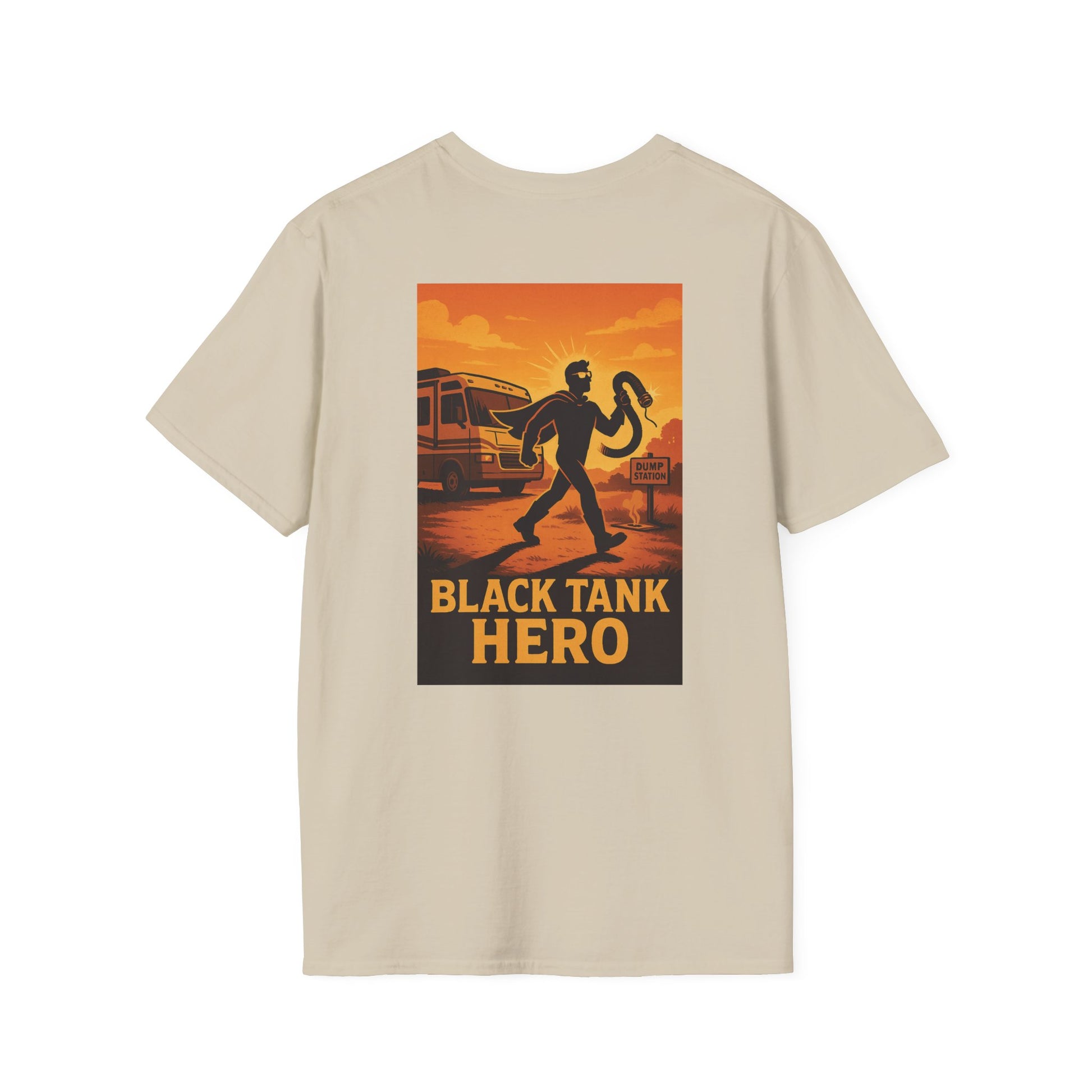 When the tanks are full and spirits are low, one figure rises from the shadows… armed with gloves, goggles, and unshakable resolve. The Black Tank Hero tee is a bold tribute to the dump station warrior in all of us.