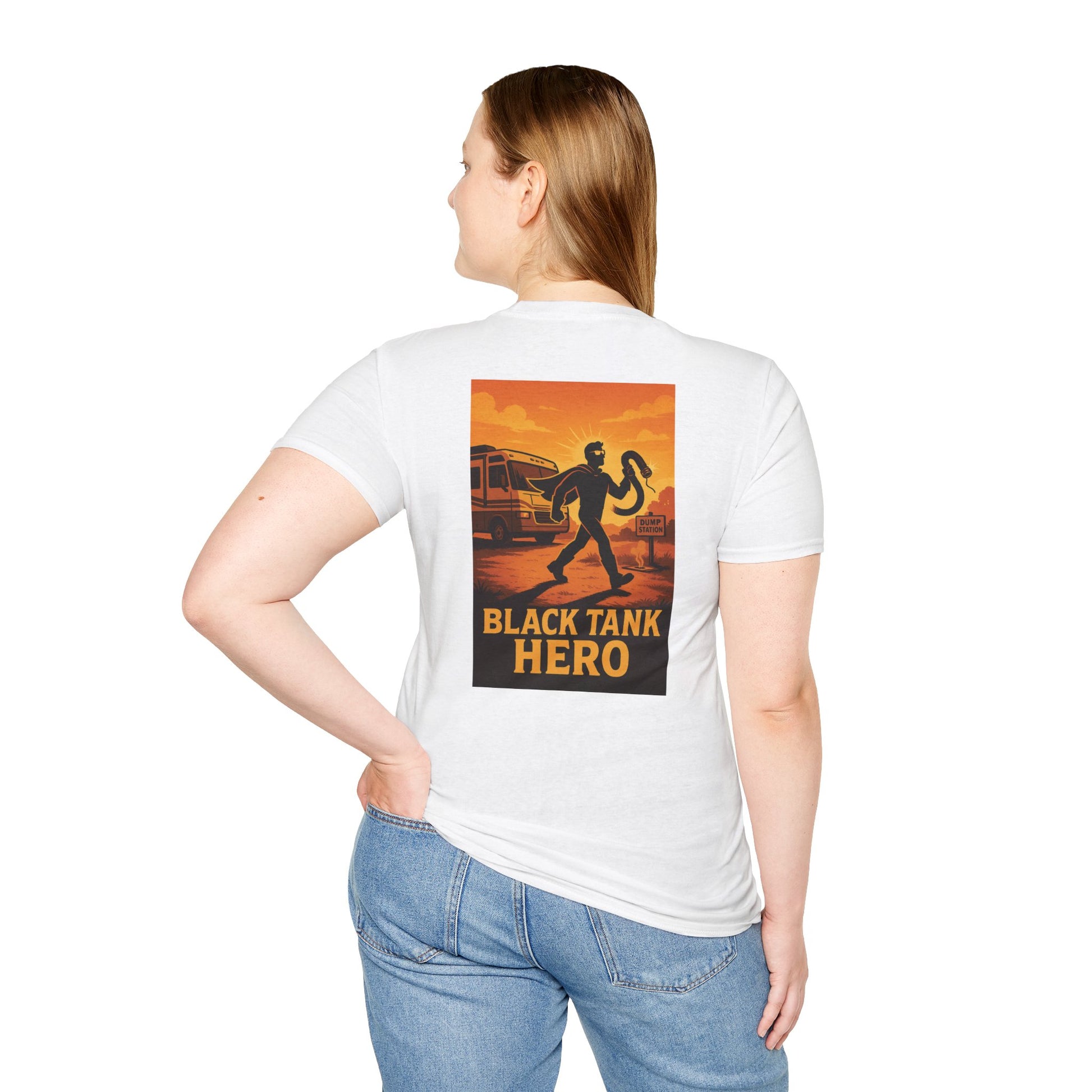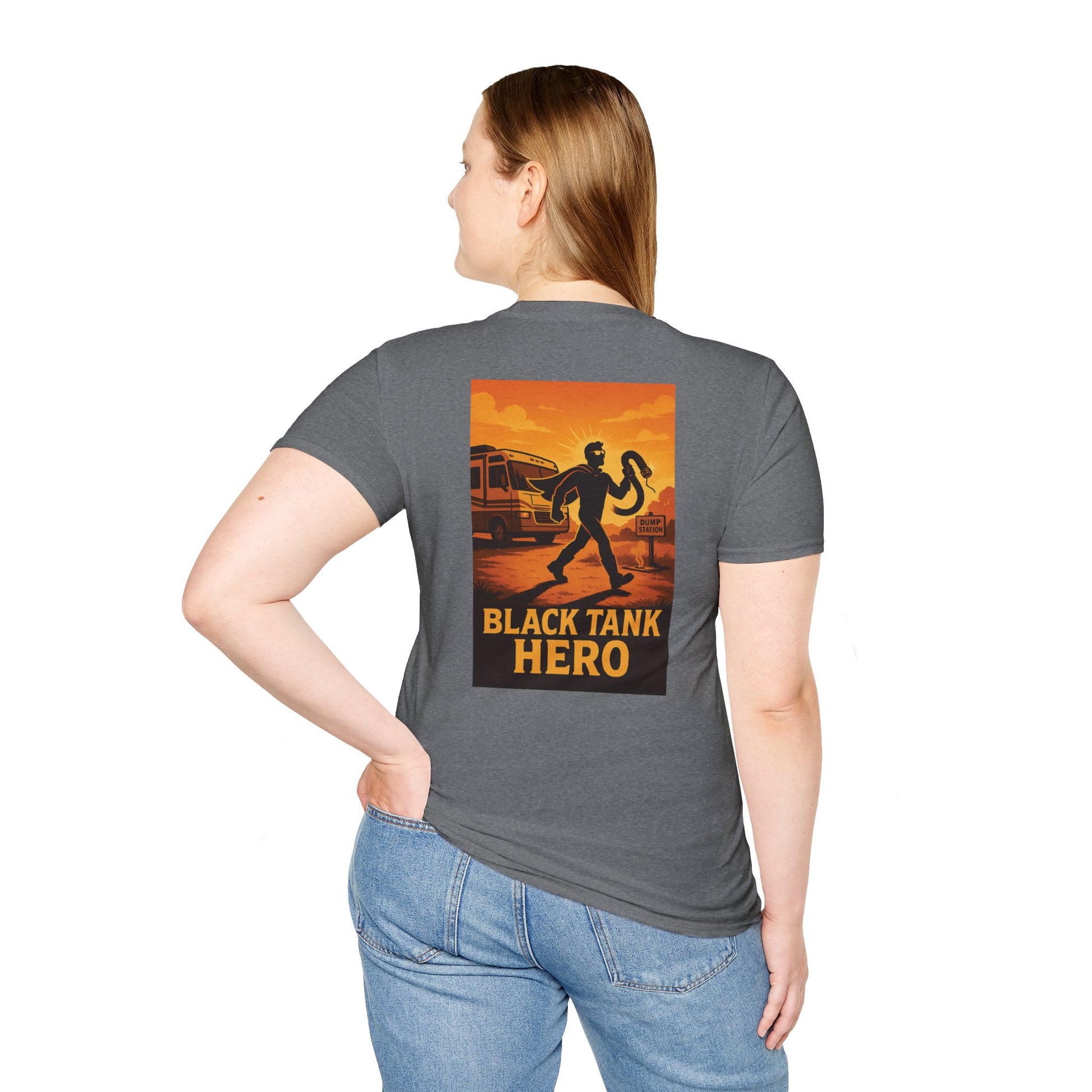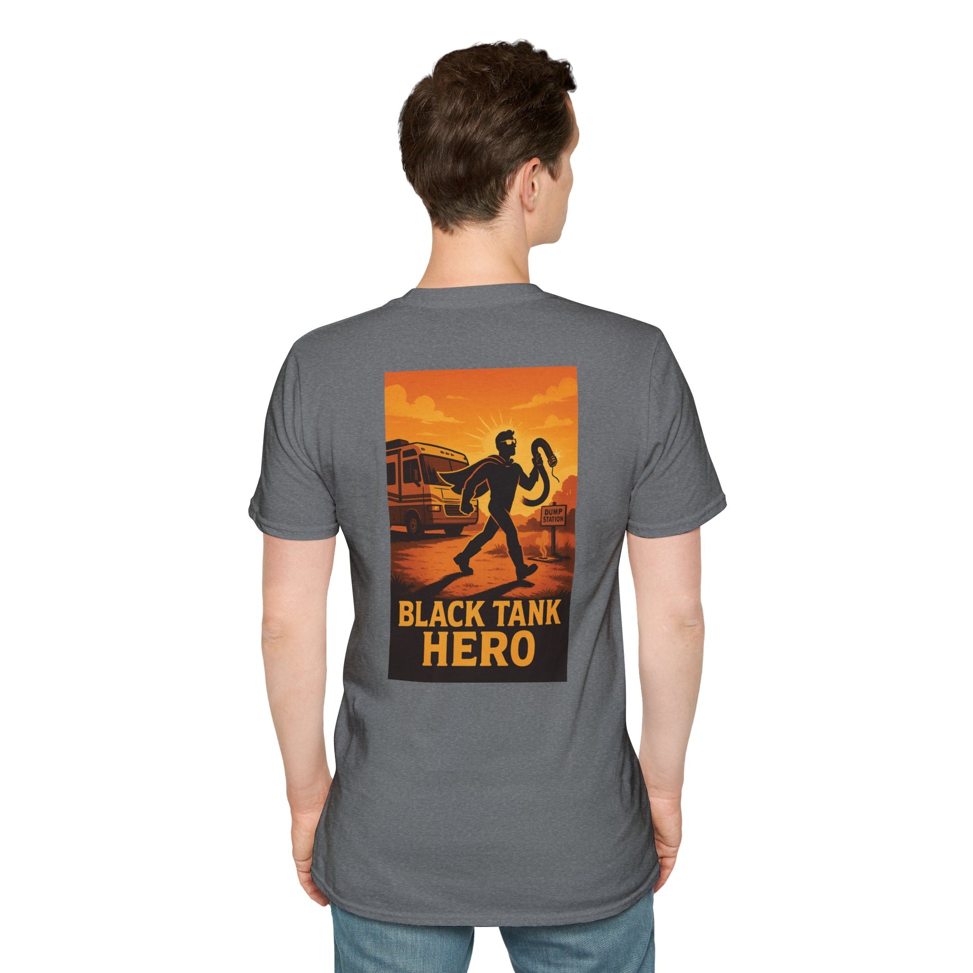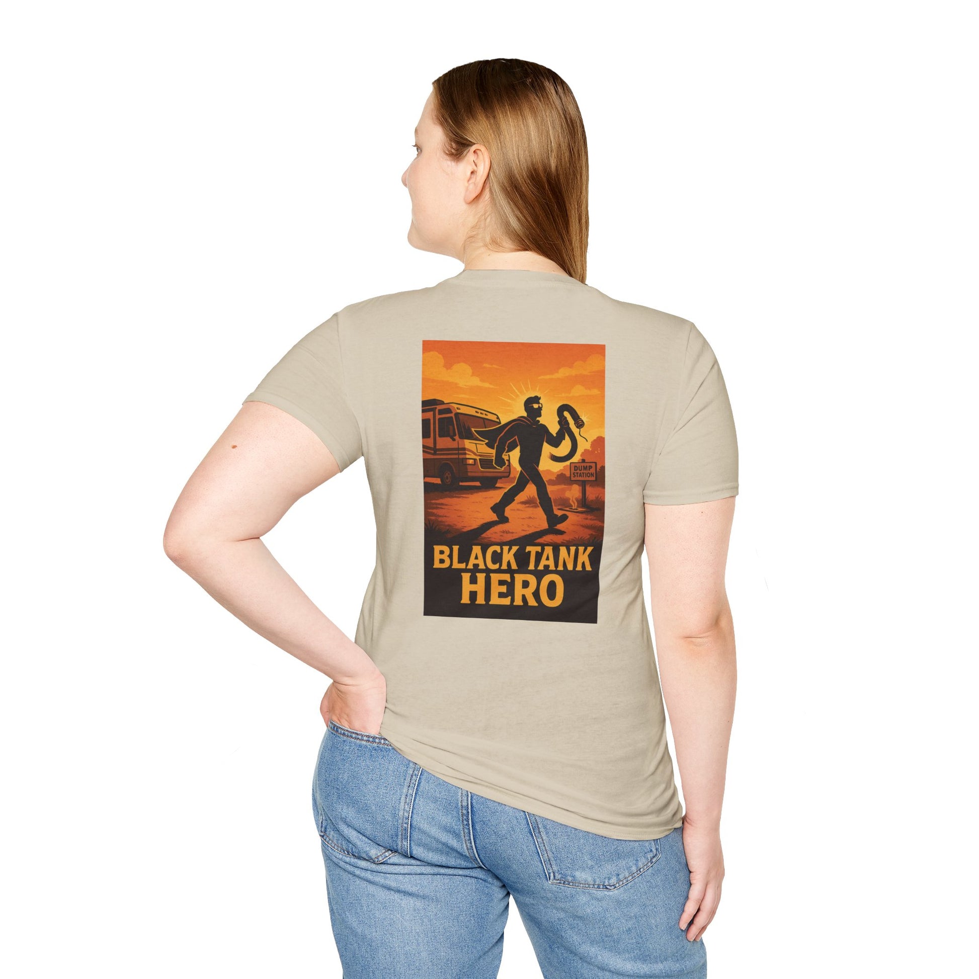 When the tanks are full and spirits are low, one figure rises from the shadows… armed with gloves, goggles, and unshakable resolve. The Black Tank Hero tee is a bold tribute to the dump station warrior in all of us.