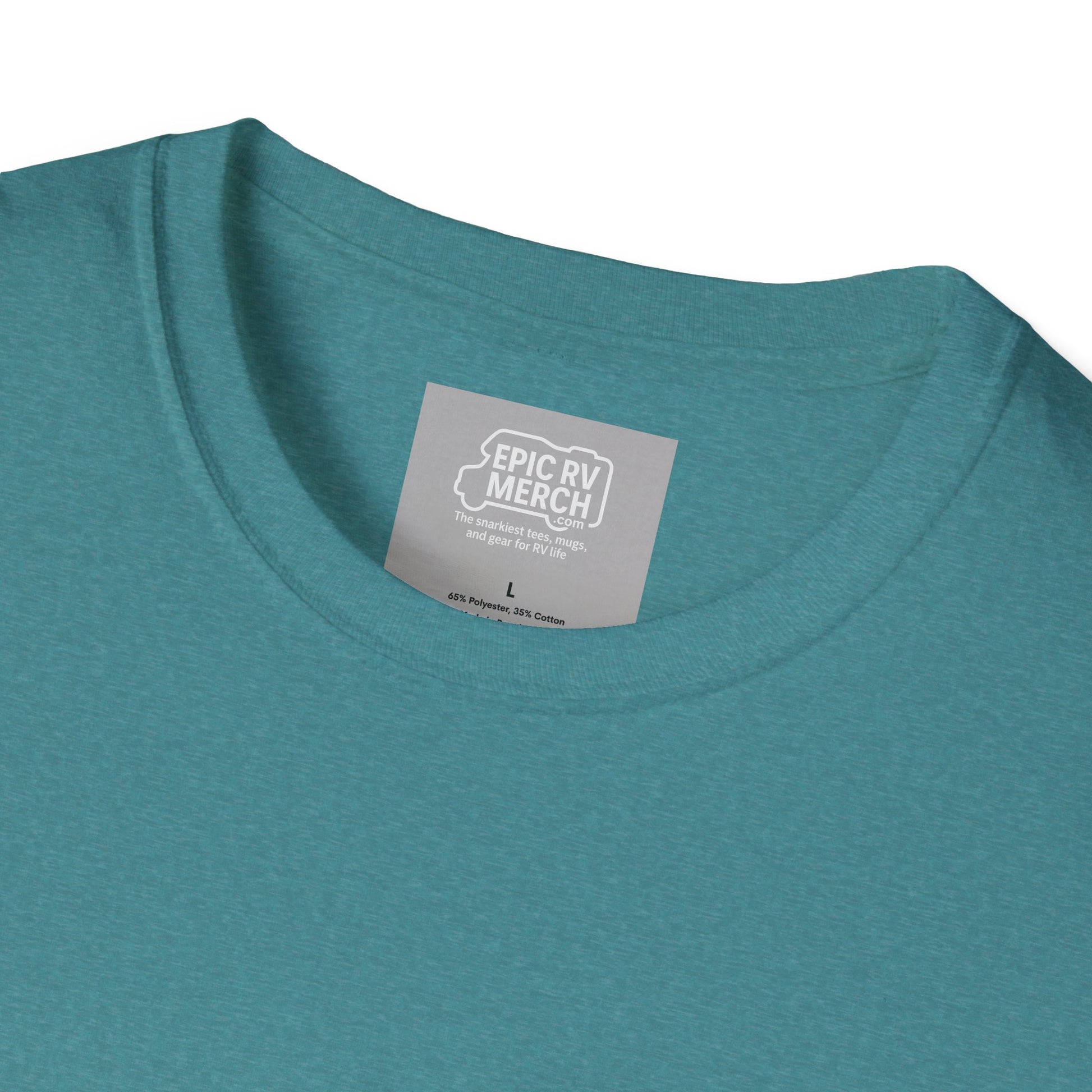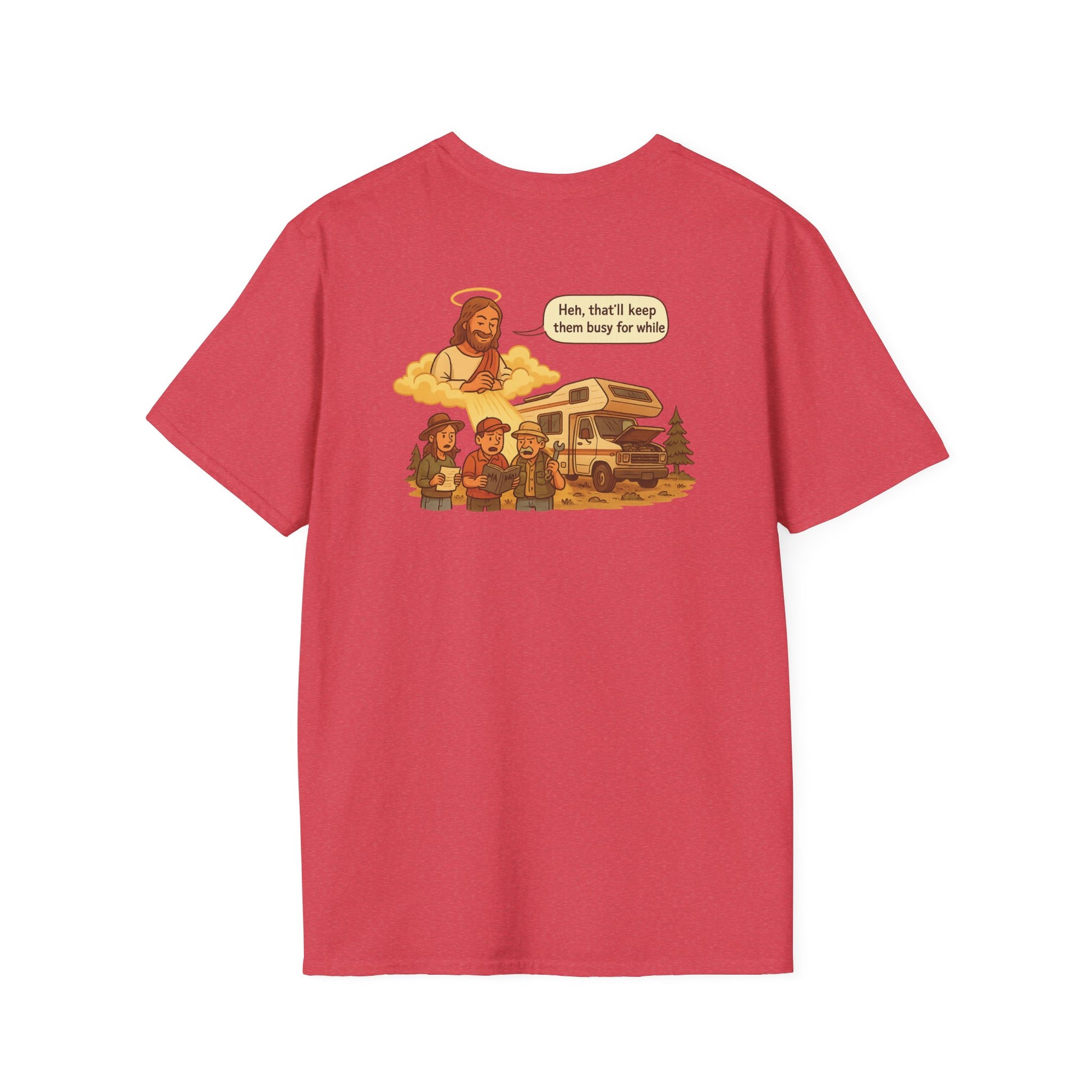 When the engine light comes on and the campground goes silent, just remember: someone up there is having a laugh. The Divine Intervention tee captures that holy moment when your motorhome becomes a lesson in patience, plumbing, and prayer.