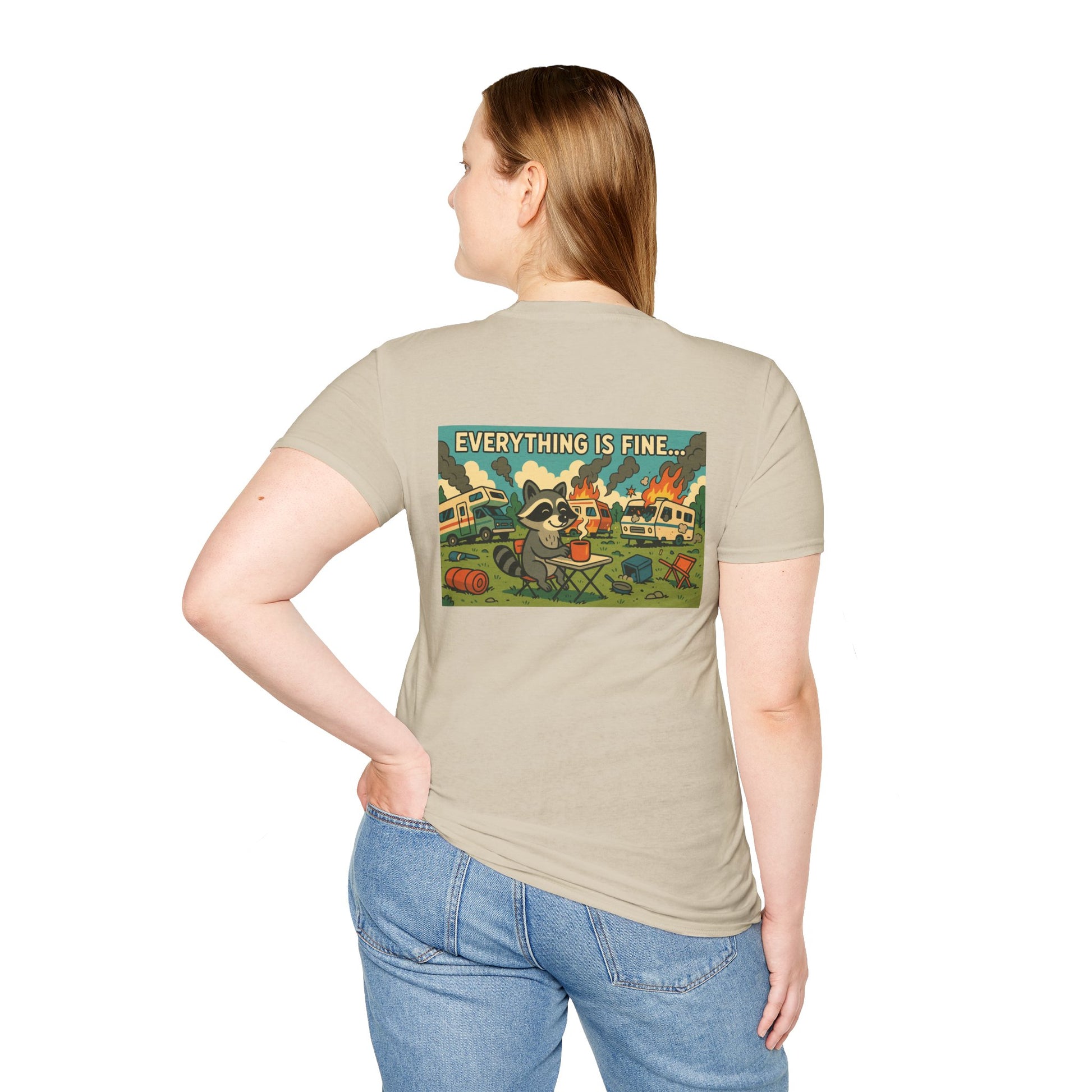 “Everything is Fine” Raccoon RV Disaster Tee – Softstyle Unisex Shirt