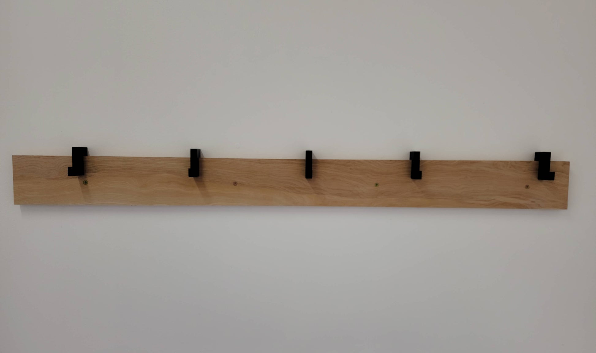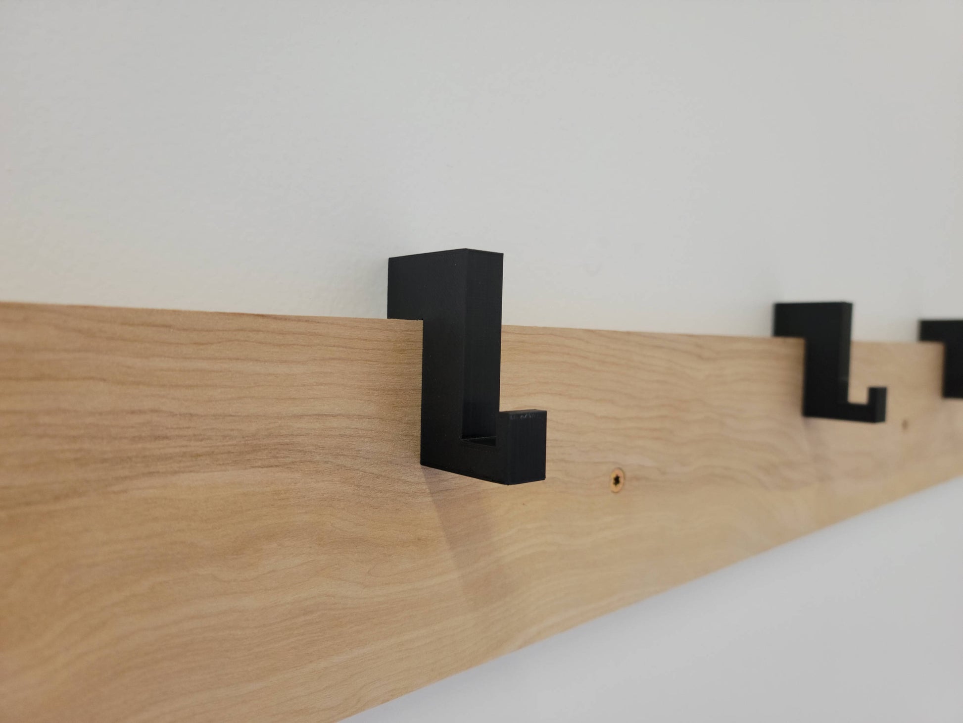 Look no further. This hardwood Maple track and hook kit is just what you need for hanging your favorite things. Comes with a 4' long beautiful piece of 3/4" thick Maple Hardwood cut at a 45* angle on the top for the French cleat hooks. Also includes 5 French cleat hooks. These hooks were designed and printed in house and aren't available anywhere else.