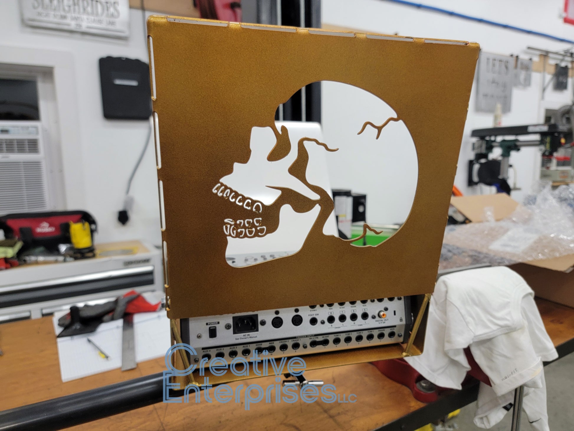 - Rock-Ready Aesthetics: Featuring a bold skull and flames design, this enclosure tells your audience you mean business.