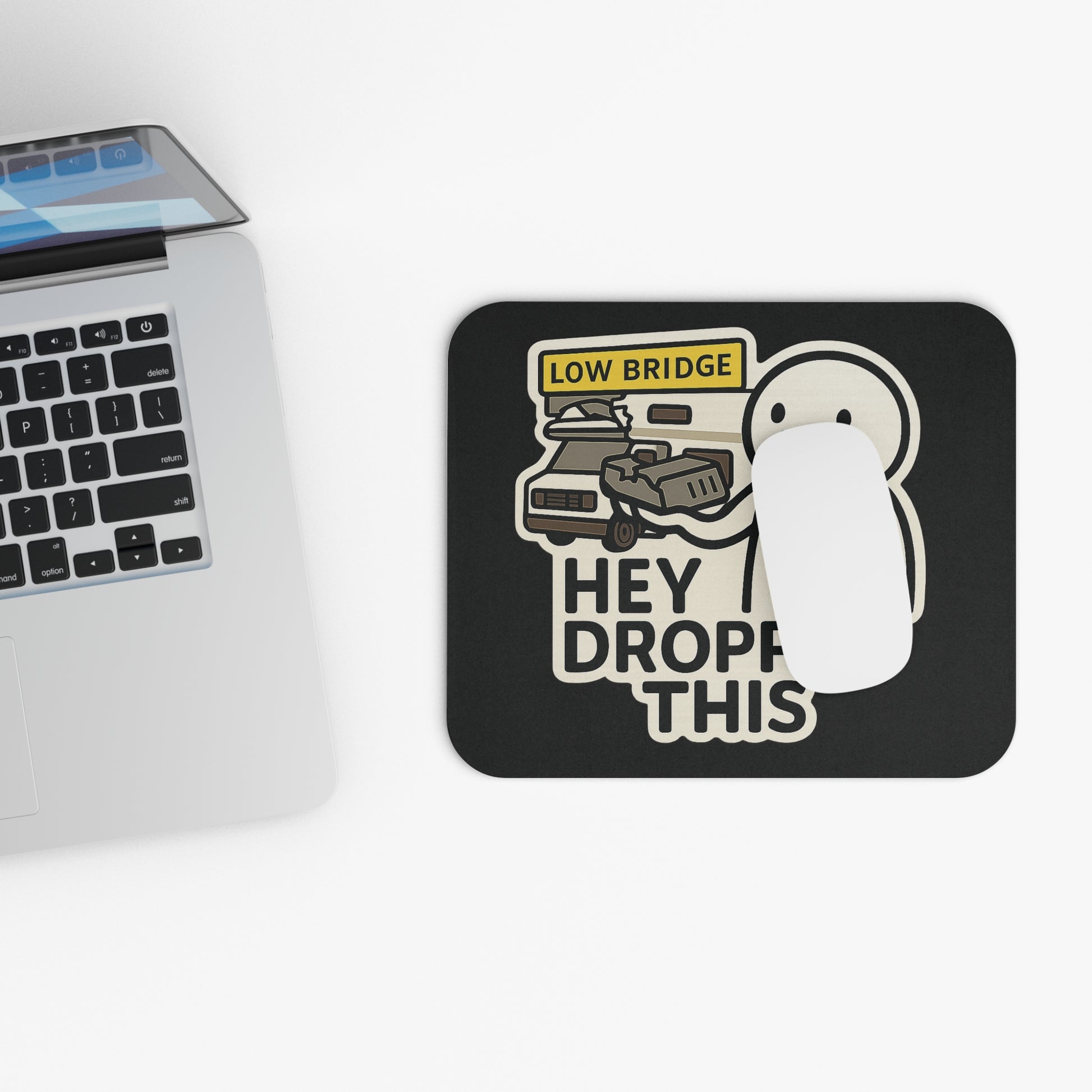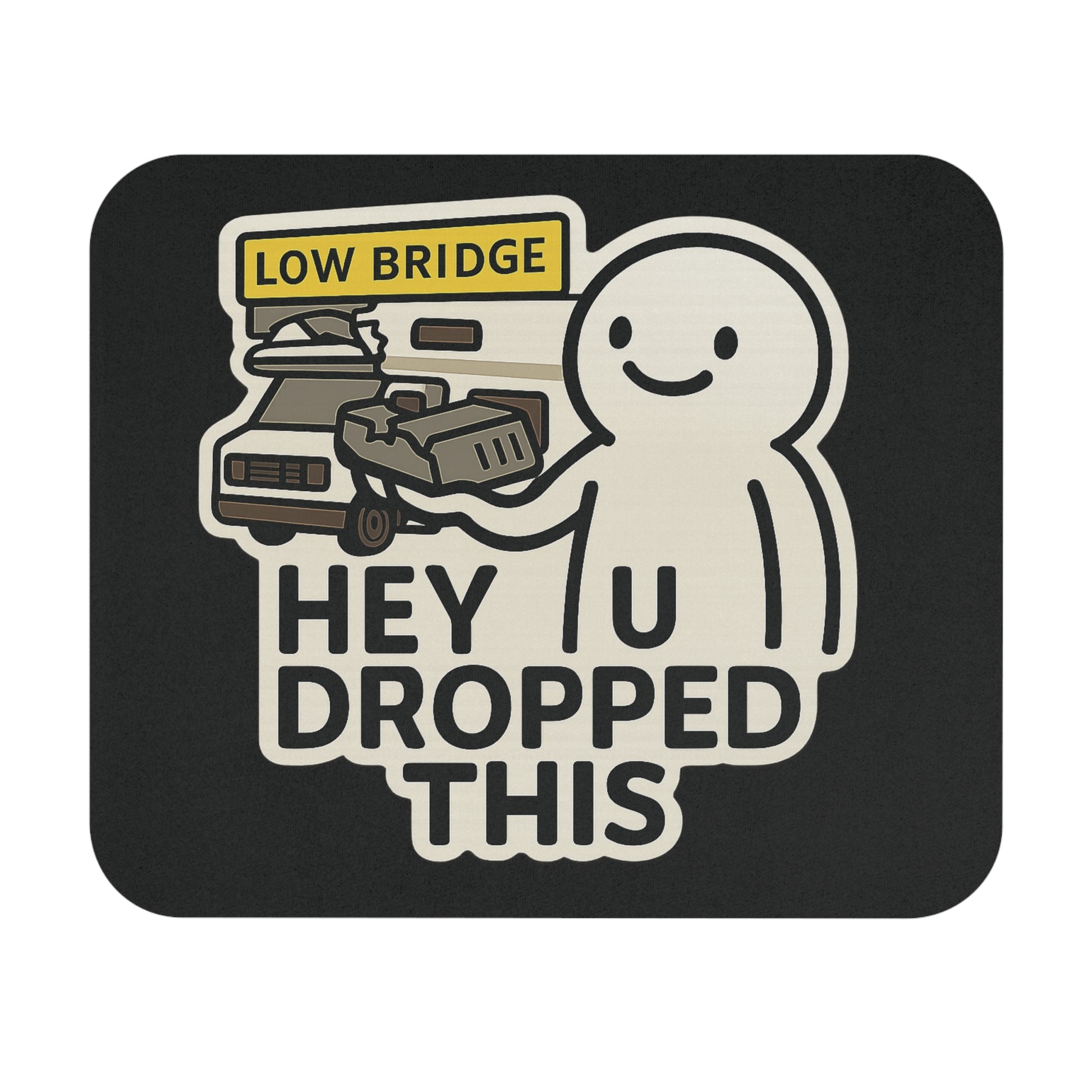 The mousepad equivalent of a friendly pat on the back... and then a devastating reminder you didn’t check your RV height. Hey U Dropped This is the perfect blend of humor and horror for seasoned road warriors and navigation-challenged newbies alike. Featuring a cartoon helper politely returning the shredded top of your RV (you know, the part that used to be attached), this desk accessory is a must-have for anyone who’s ever whispered “please fit” under an overpass.