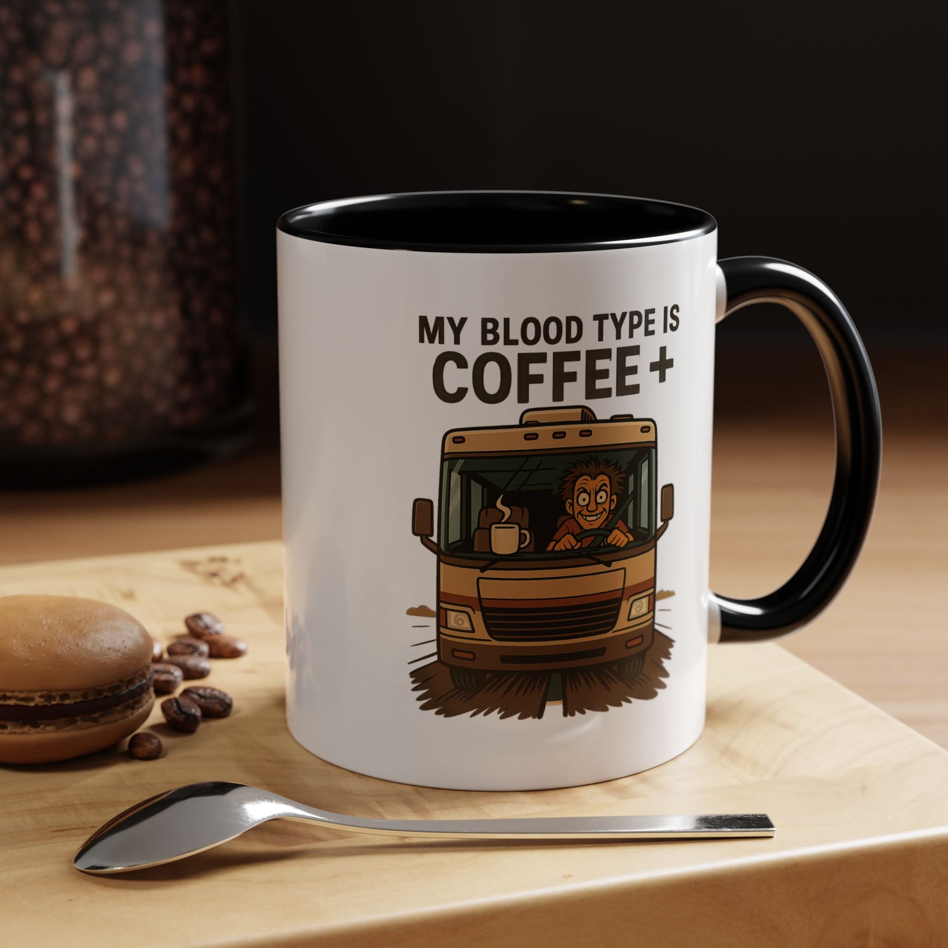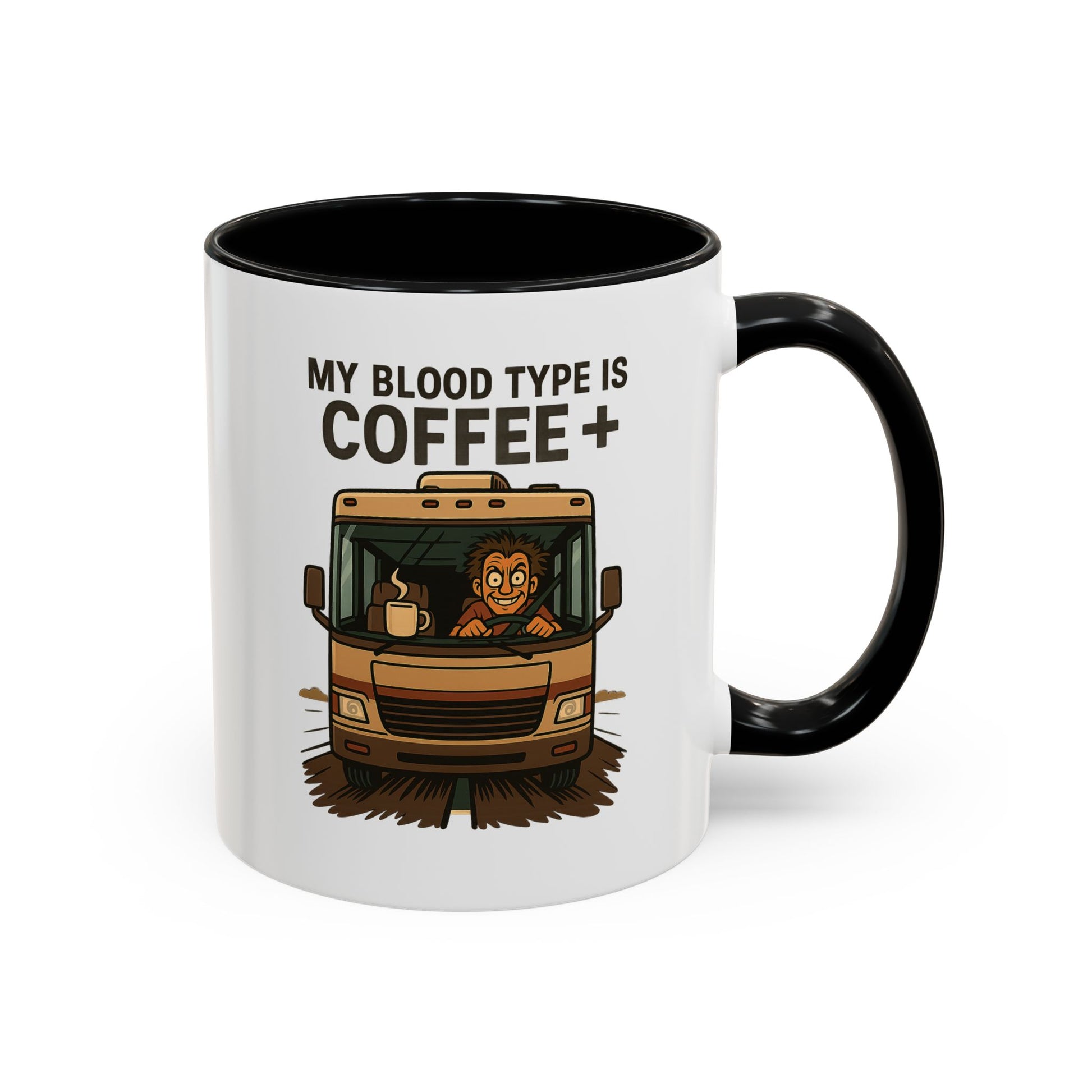 For the RVer who's accepted that their cardiovascular system runs on premium unleaded caffeine and their Class A runs on diesel, we present: the My Blood Type is Coffee+ mug — because nothing says "road-ready" quite like a slightly unhinged driver clutching a coffee cup that's basically a life-support system.