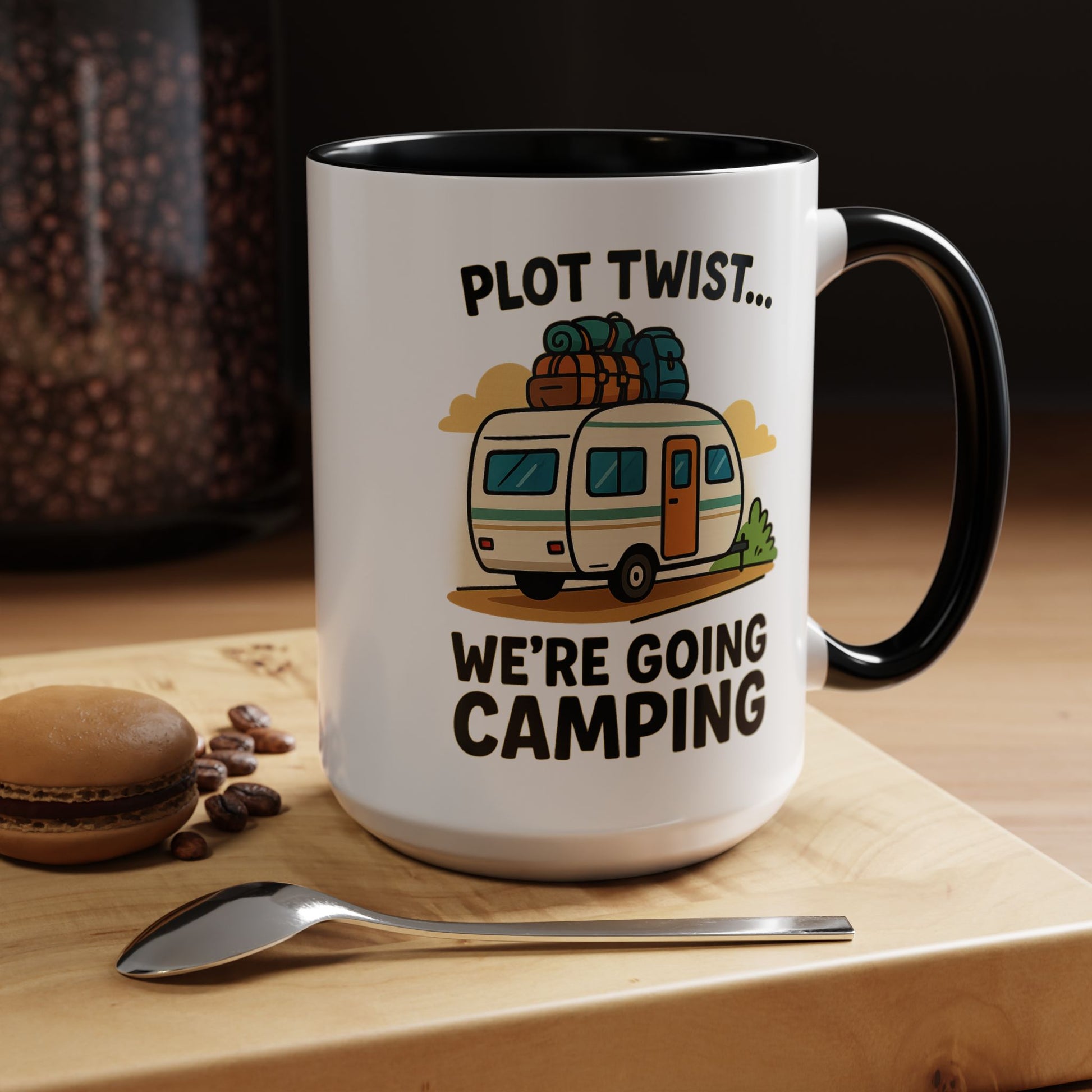 Featuring an adorably overloaded camper ready to roll, this mug celebrates those spontaneous decisions that make life infinitely better. Meeting got cancelled? Plot twist. Weekend free? Plot twist. Tuesday feeling boring? Plot twist – you're going camping.