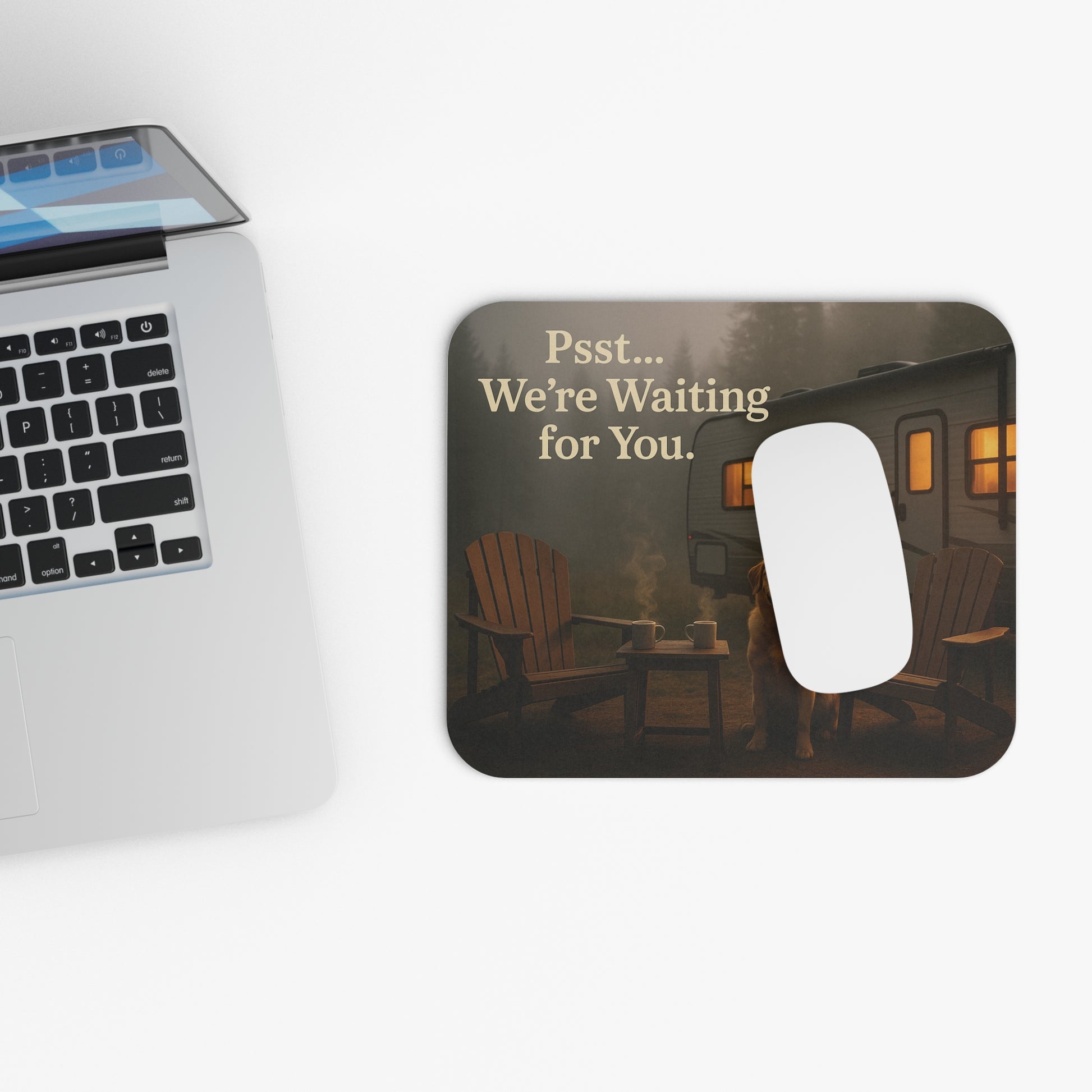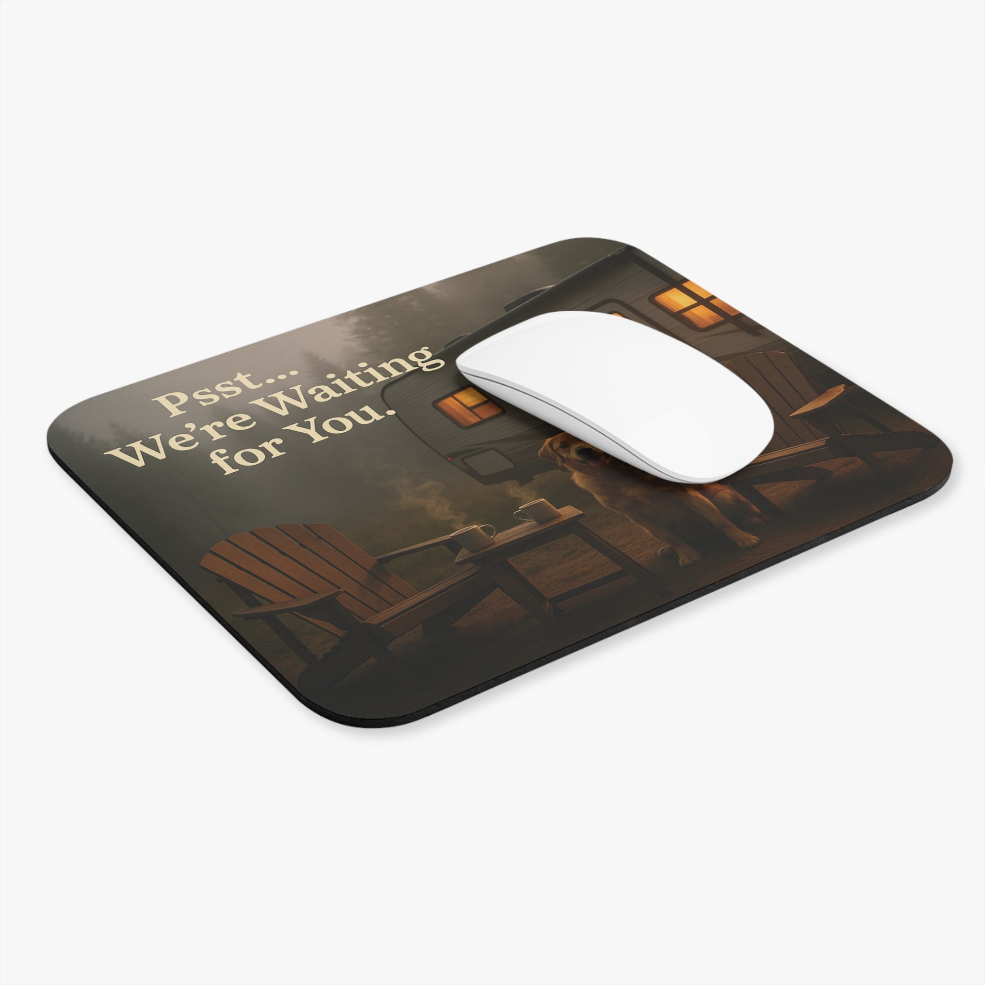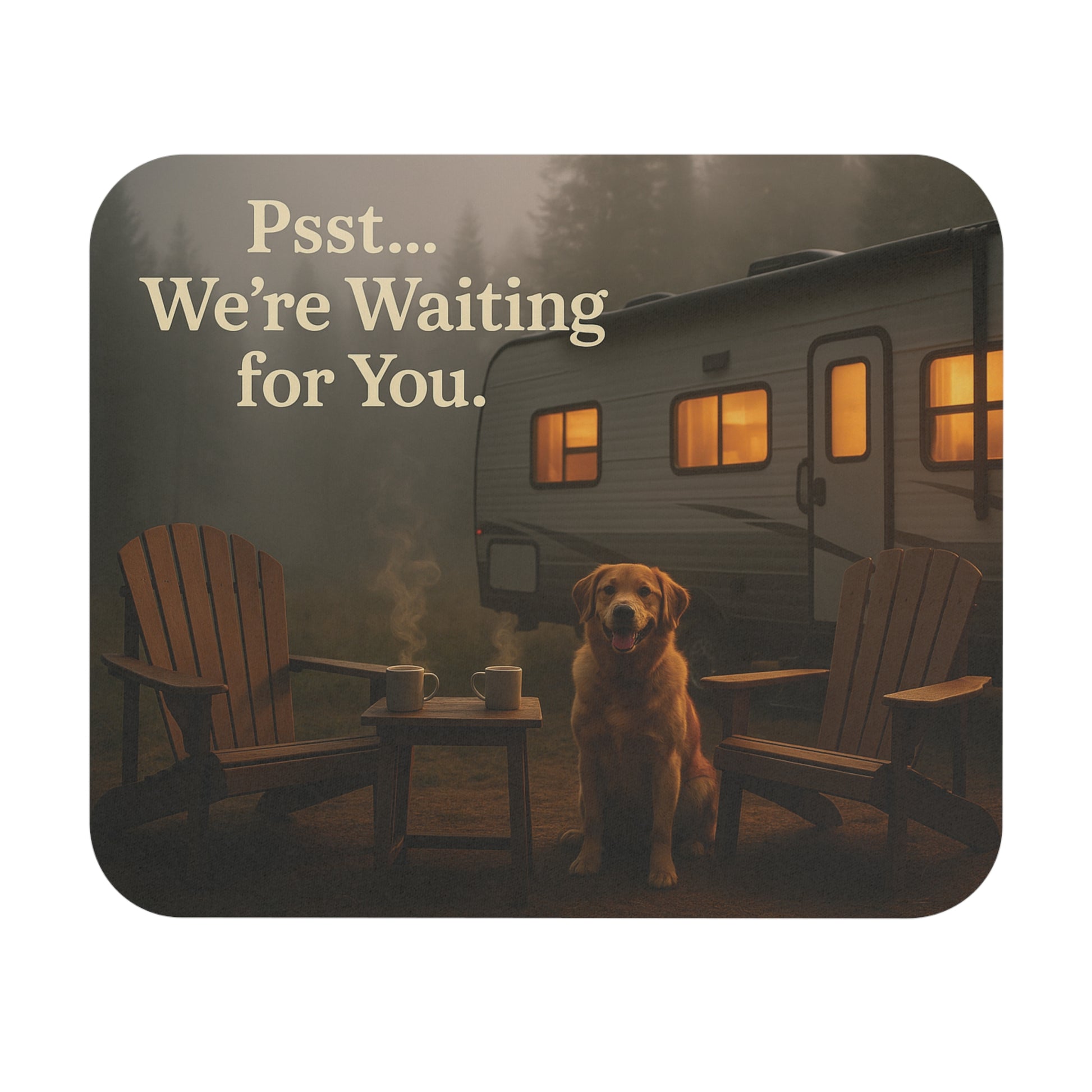 Psst… We’re Waiting for You RV Mouse Pad – Cozy Camper Scene with Dog