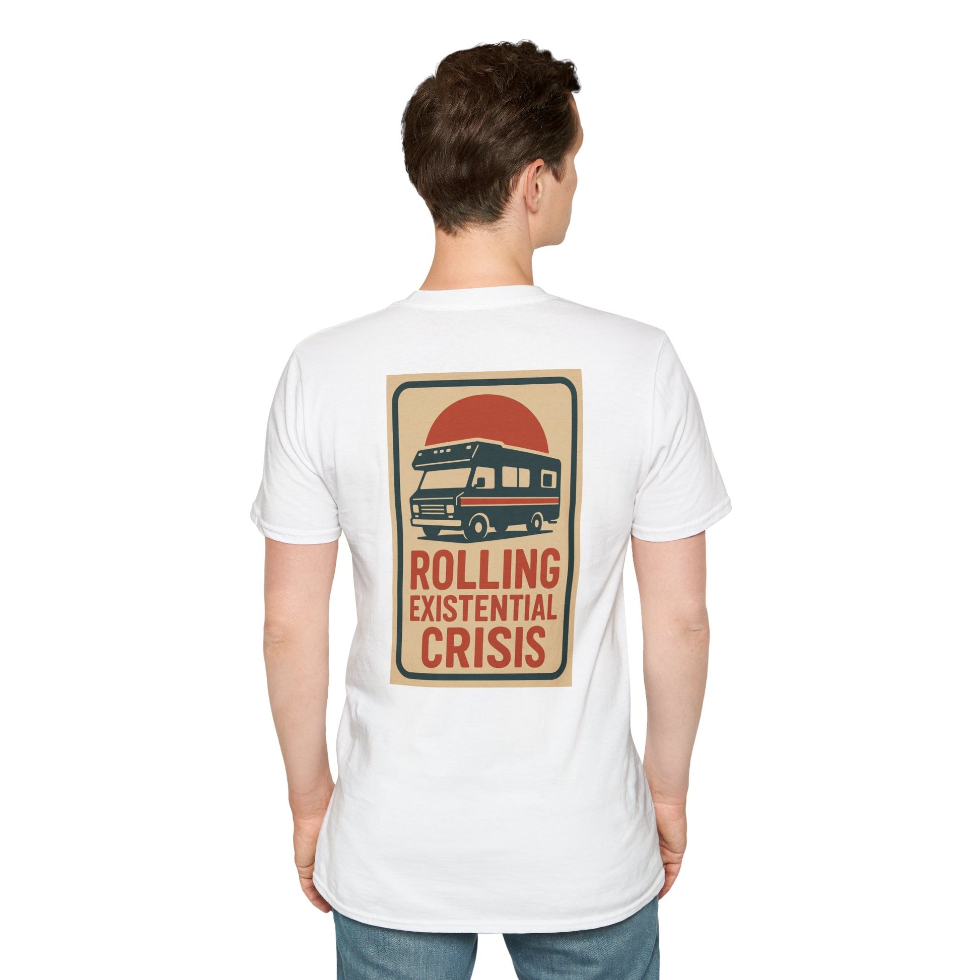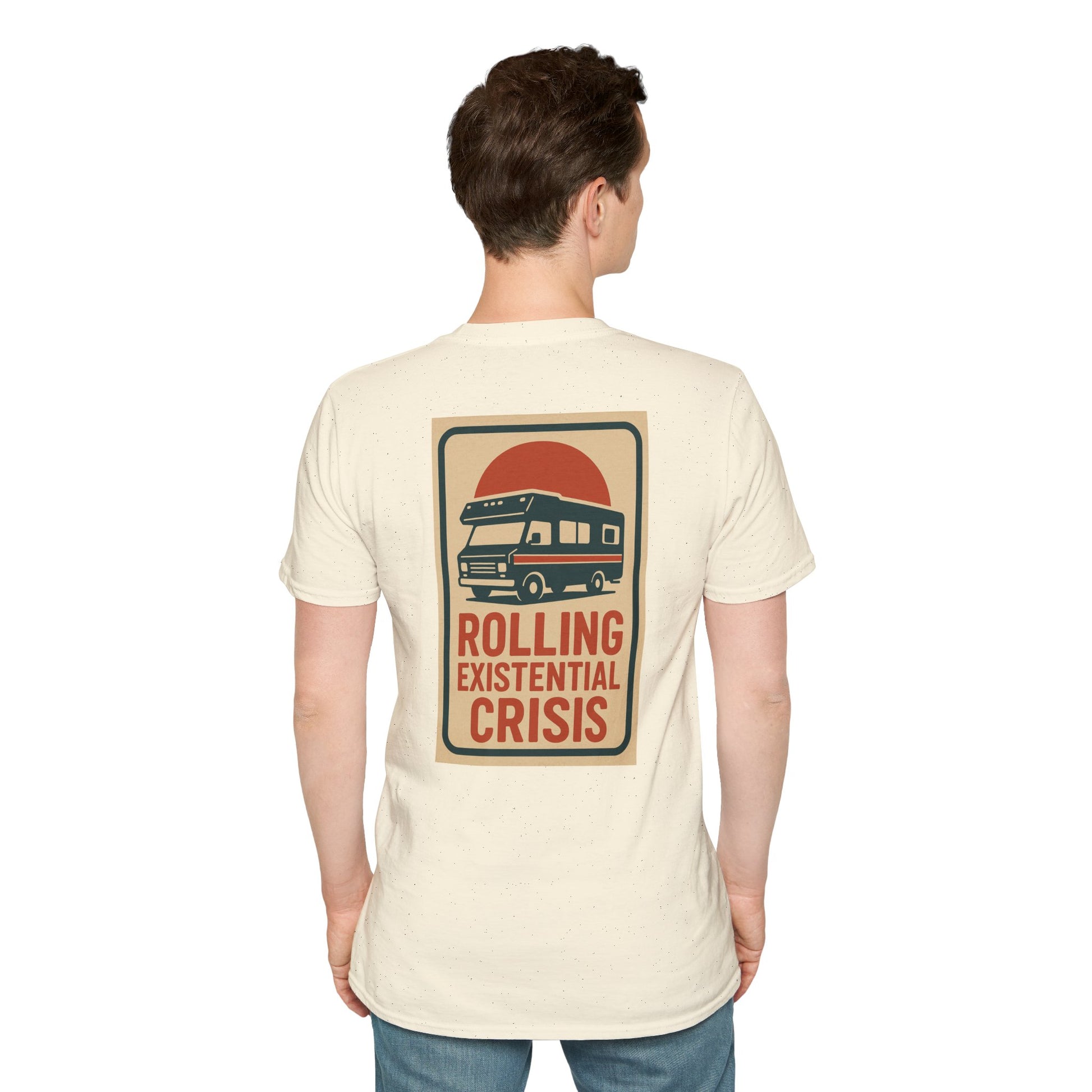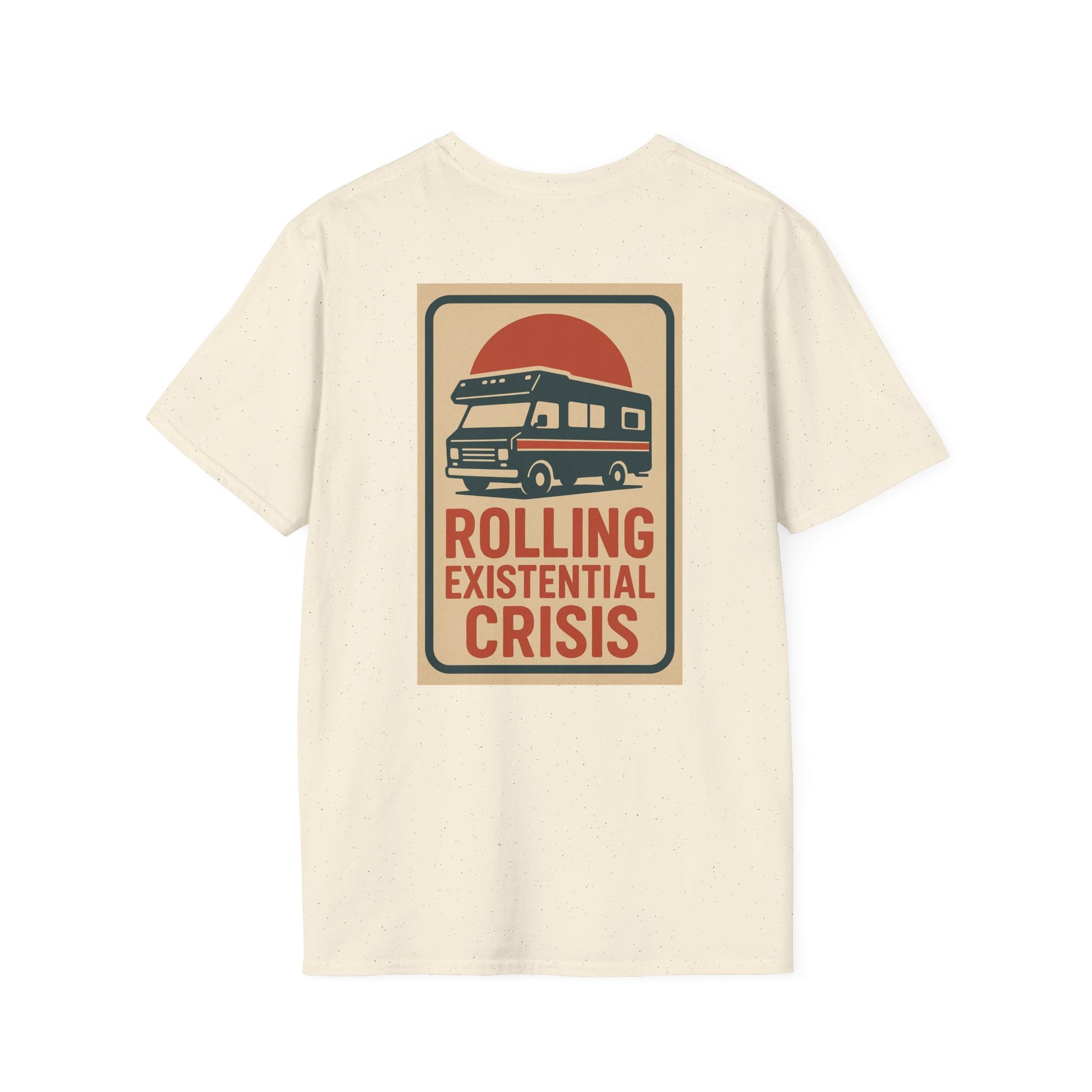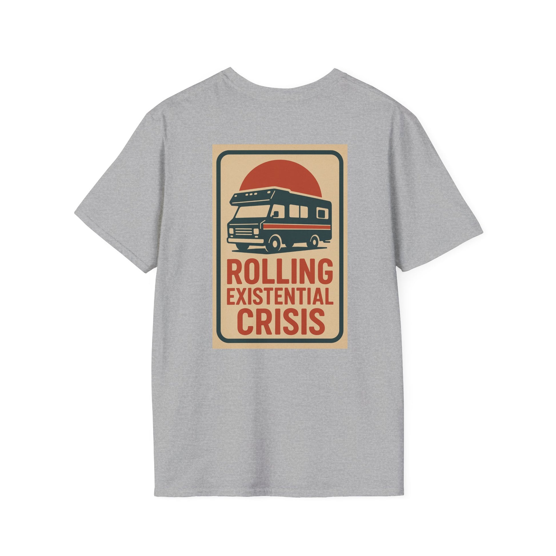 Why buy a sports car when you can buy 32 feet of fiberglass and a sewer hose? The Rolling Existential Crisis tee is for anyone who traded a steady address for RV life—and now wonders if “finding yourself” really meant losing your mind.