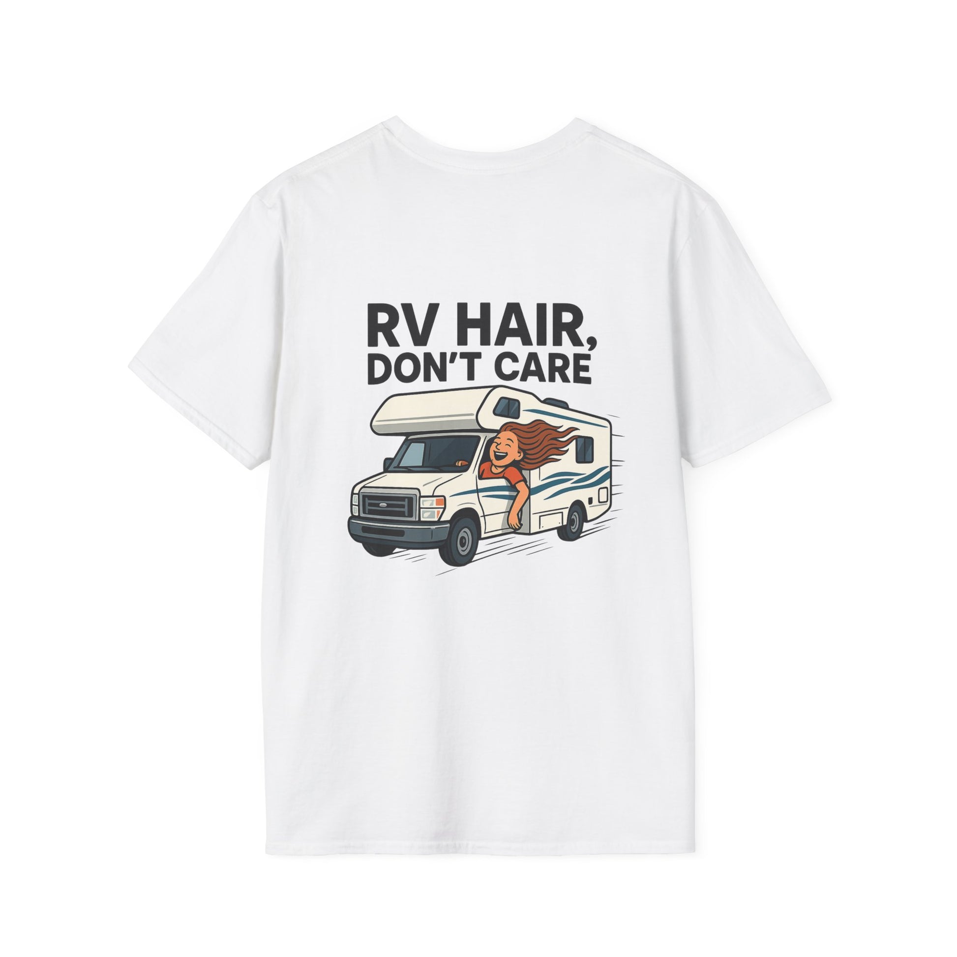 For the RV woman who's discovered that maintaining salon-perfect hair while driving a Class C at highway speeds is both impossible and completely unnecessary, we present: the RV Hair, Don't Care tee. When you're living your best nomadic life, wind-whipped freedom beats perfectly styled curls every time.