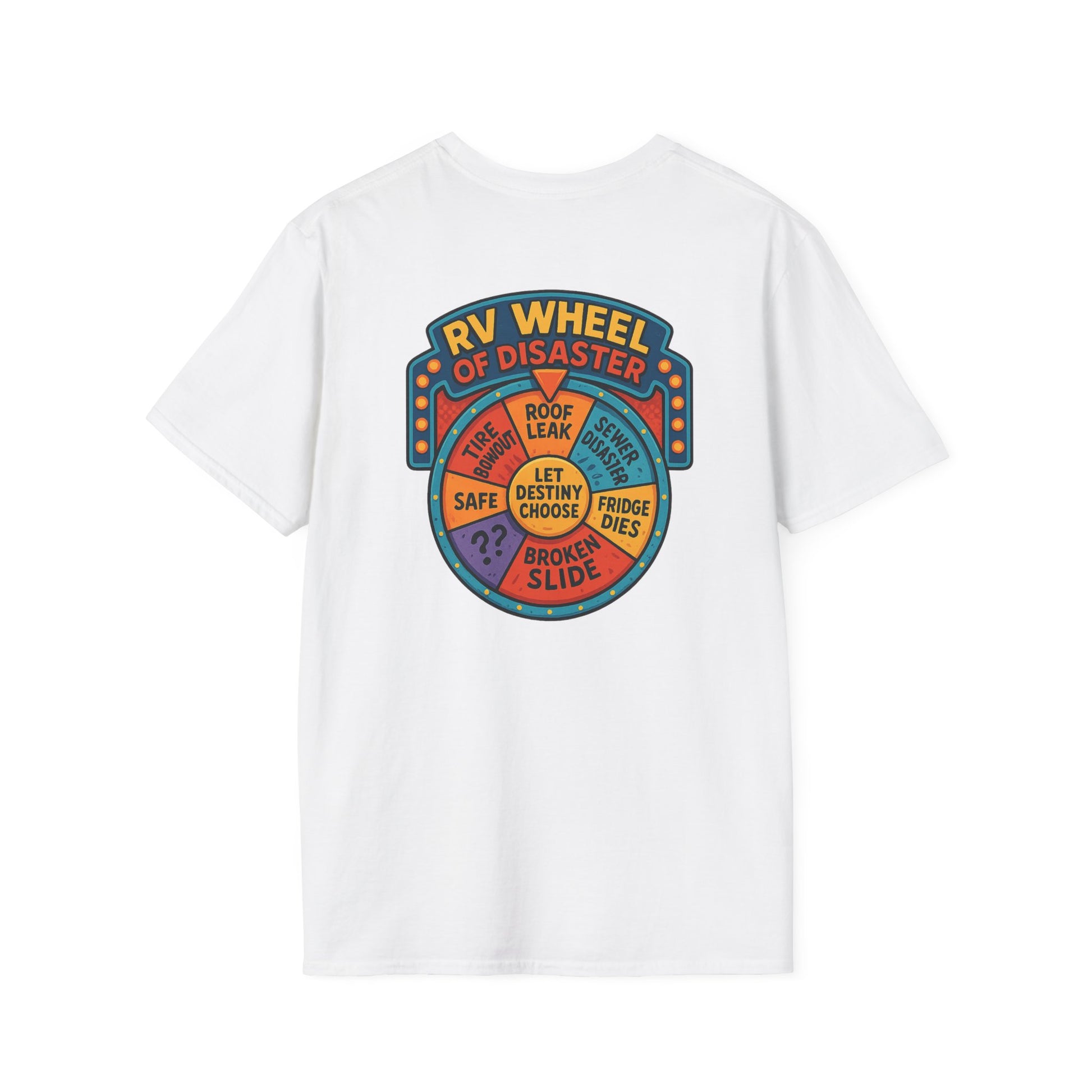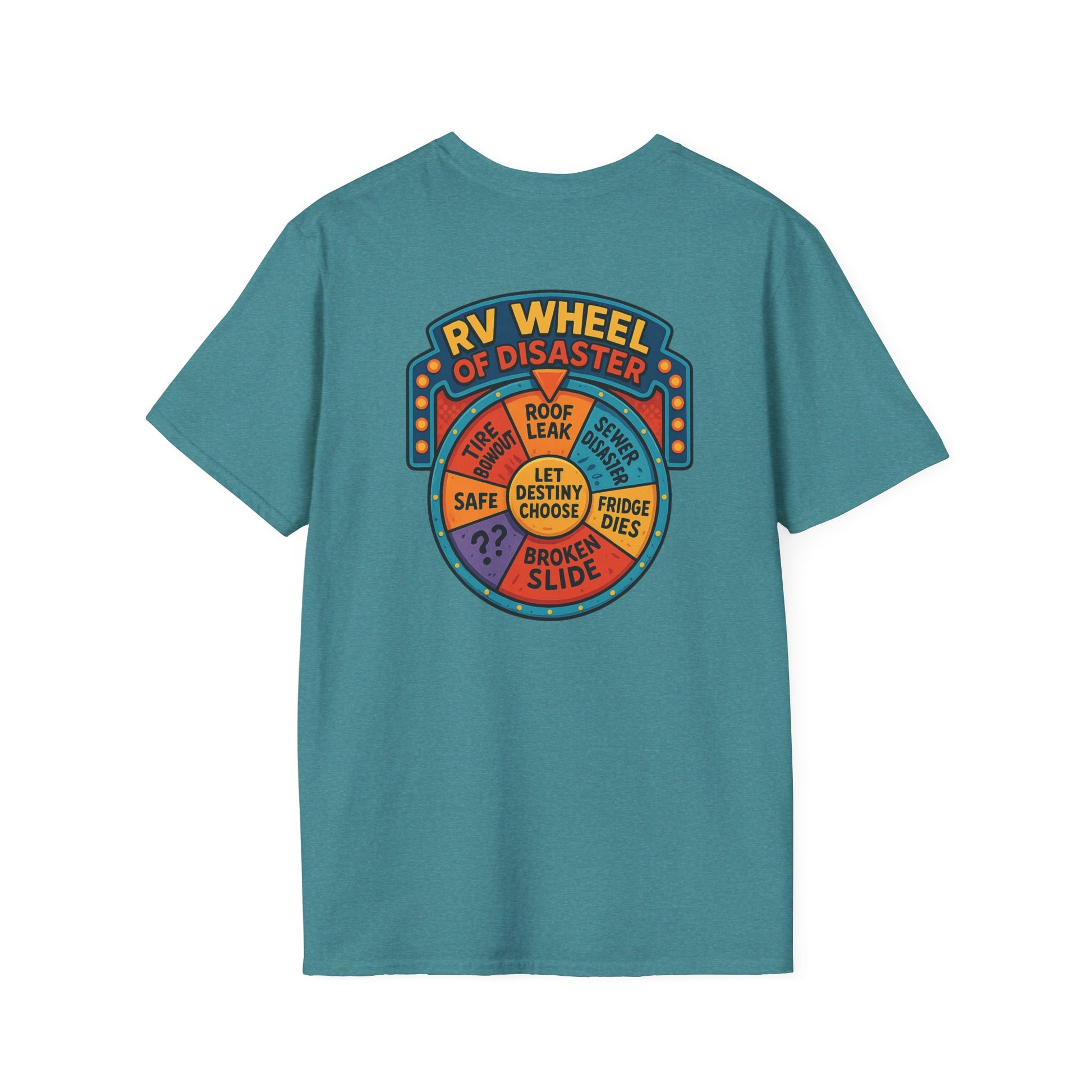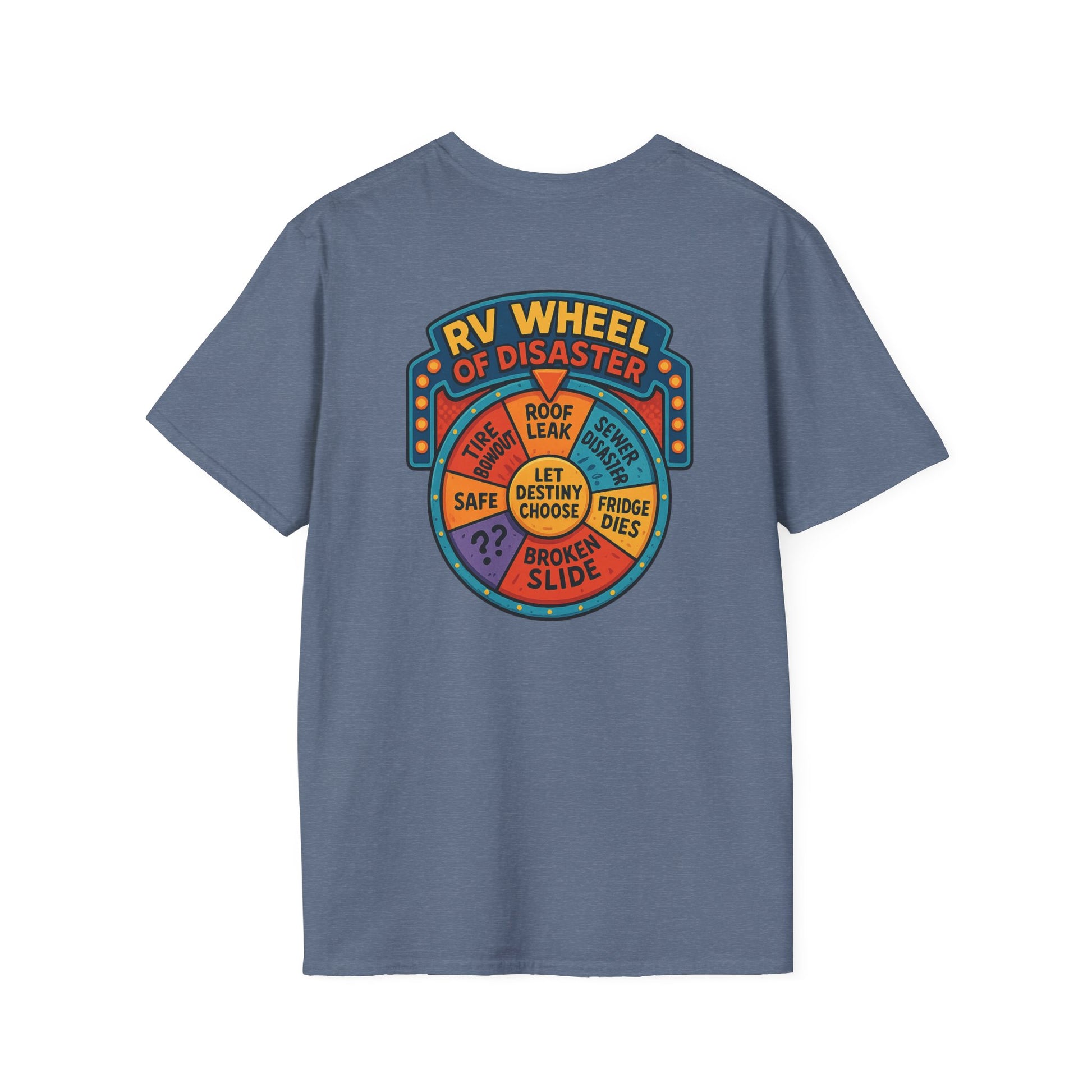 Spin the wheel, tempt the fates, and pray your black tank isn’t full. The RV Wheel of Disaster tee turns your rolling nightmare into a wearable game show of chaos. With each slice offering a fresh new breakdown—like “Roof Leak,” “Fridge Dies,” or the ever-ominous “Broken Slide”—this shirt celebrates the unpredictable thrill of RV life.
