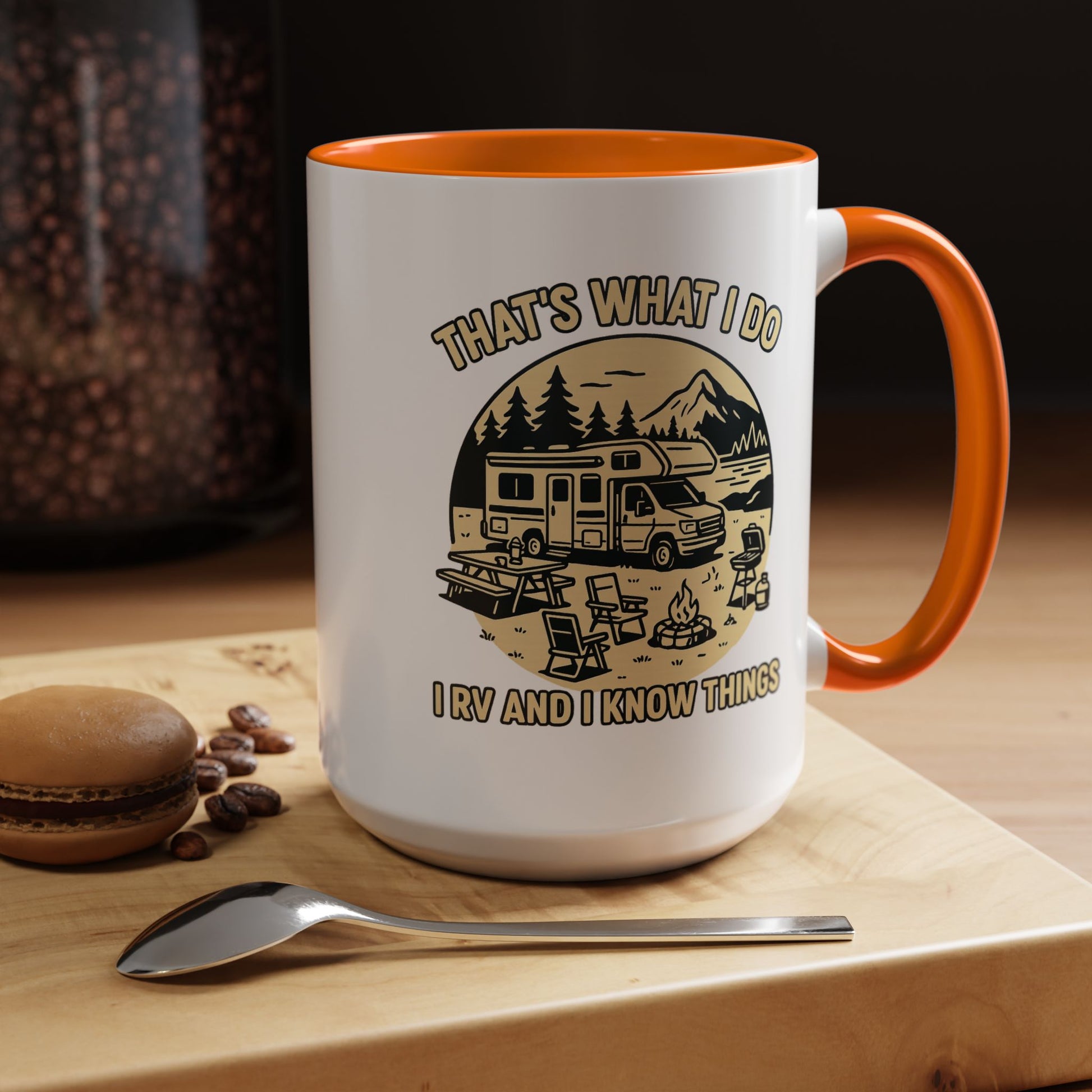 For the seasoned RVer who's accumulated enough road wisdom to basically qualify as a traveling philosopher, we present: the That's What I Do – I RV and I Know Things mug. After you've leveled a rig on an unlevel site, fixed a water heater with duct tape, and found the one campsite with cell service, you've earned the right to claim expert status.