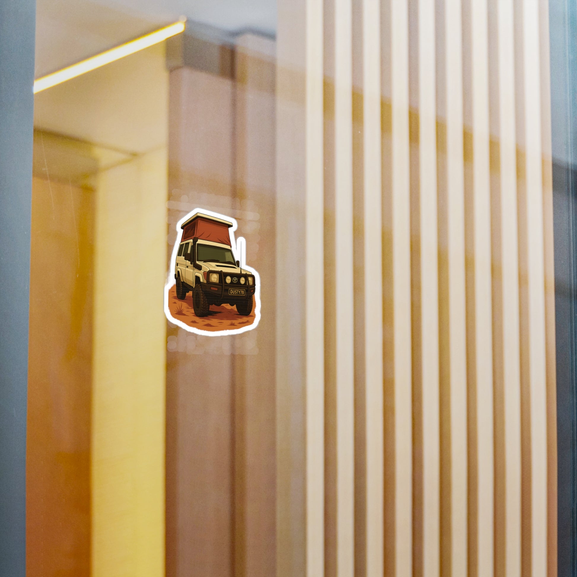 Hit the trail with Cjae and Scott’s iconic overland cruiser — the legendary Dusty78! This kiss-cut vinyl sticker features their real off-road setup from The Backpacker’s Passport, captured in bold, adventure-ready detail.