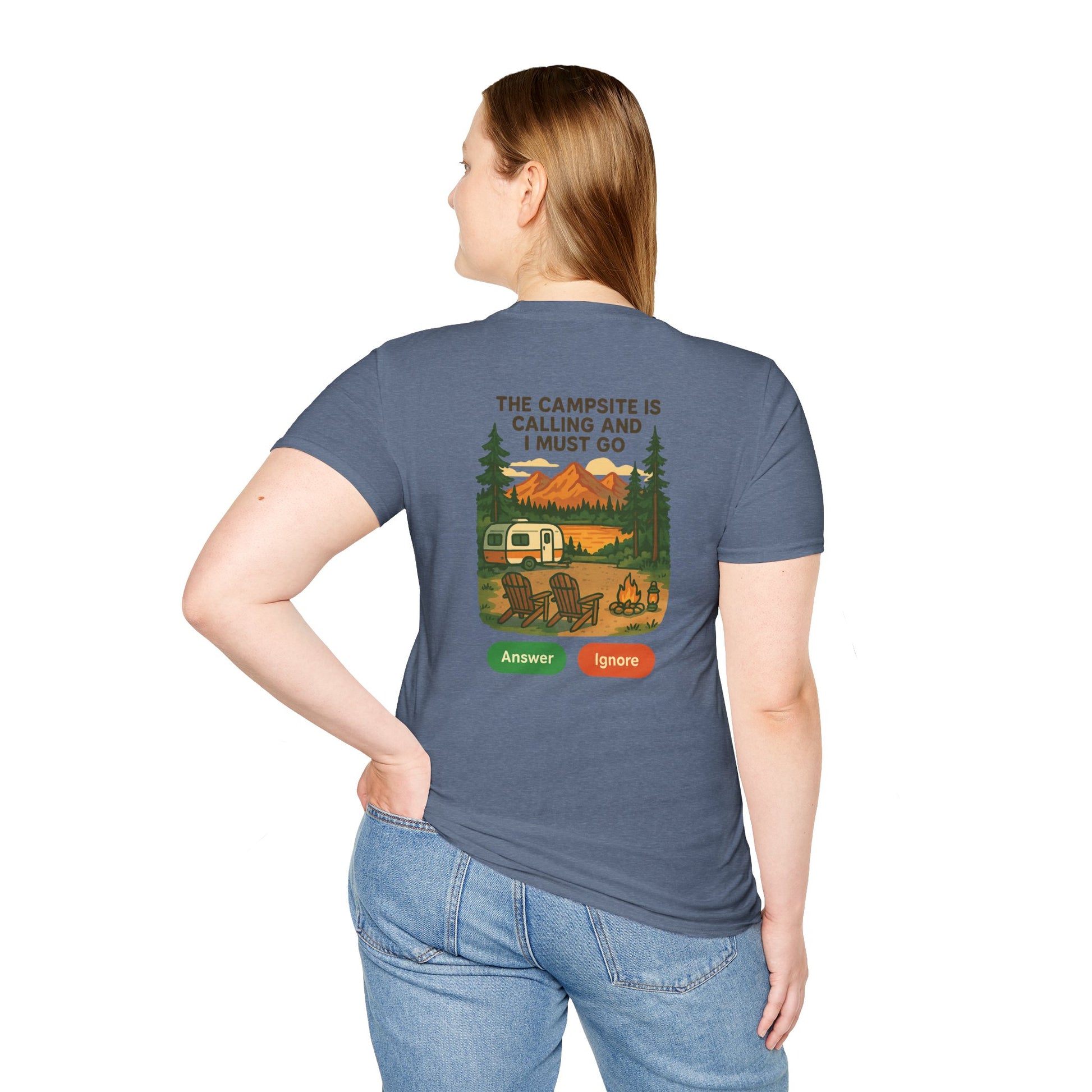 Some calls go straight to voicemail. But this one? This is a full-blown wilderness invitation with no mute button. The Campsite Is Calling – Answer or Ignore Tee captures the pure emotional chaos of choosing between daily obligations… and vanishing into the pines with a cooler and no signal.