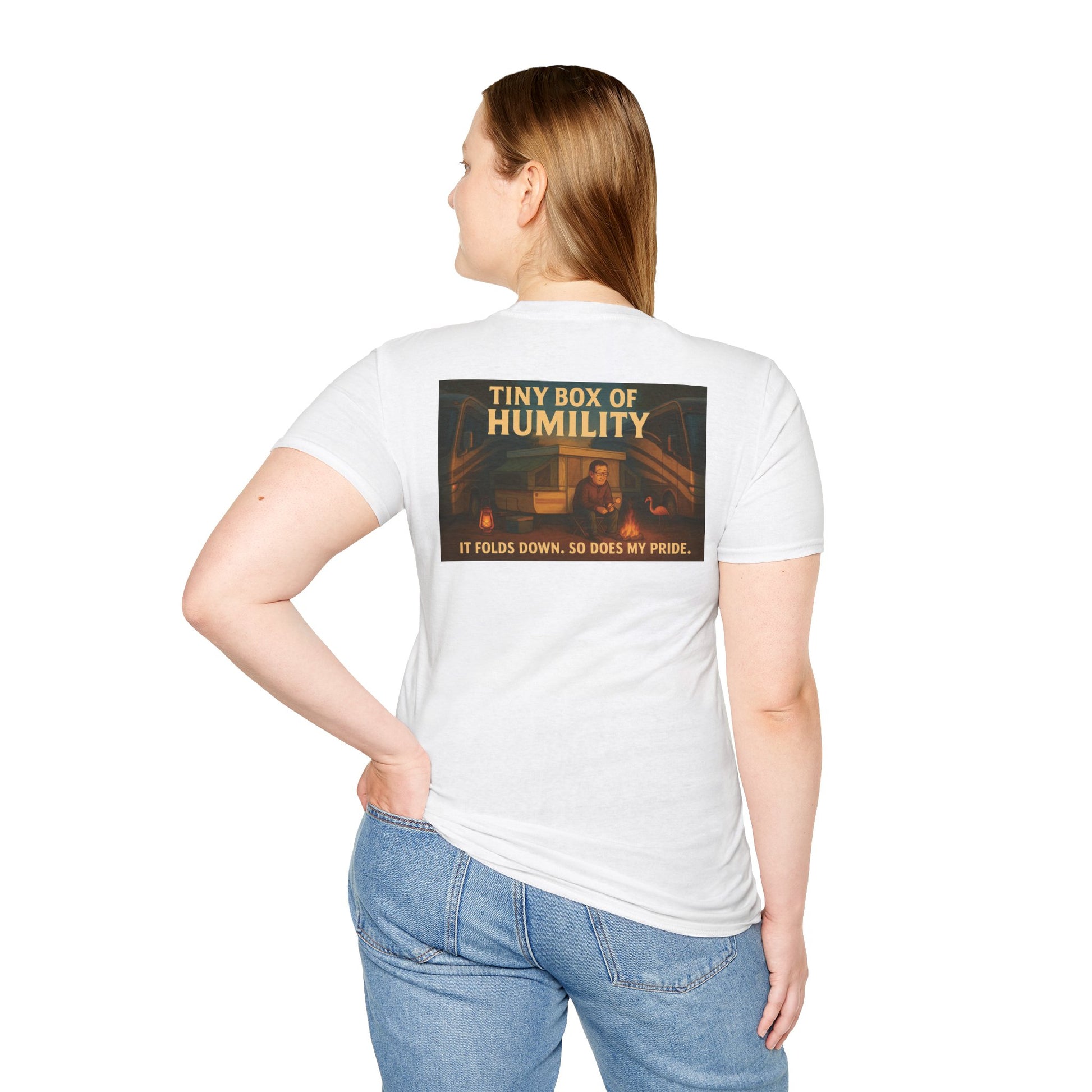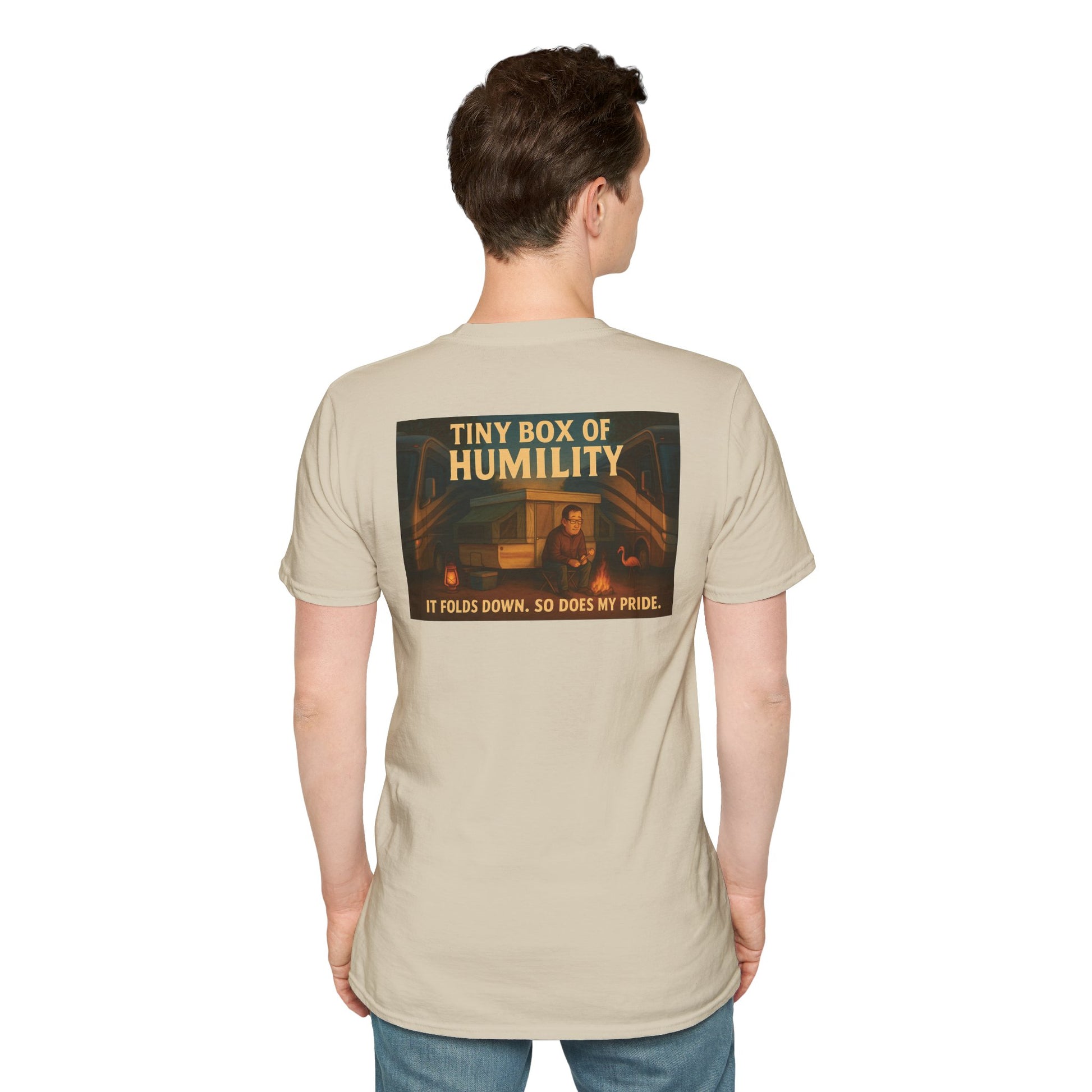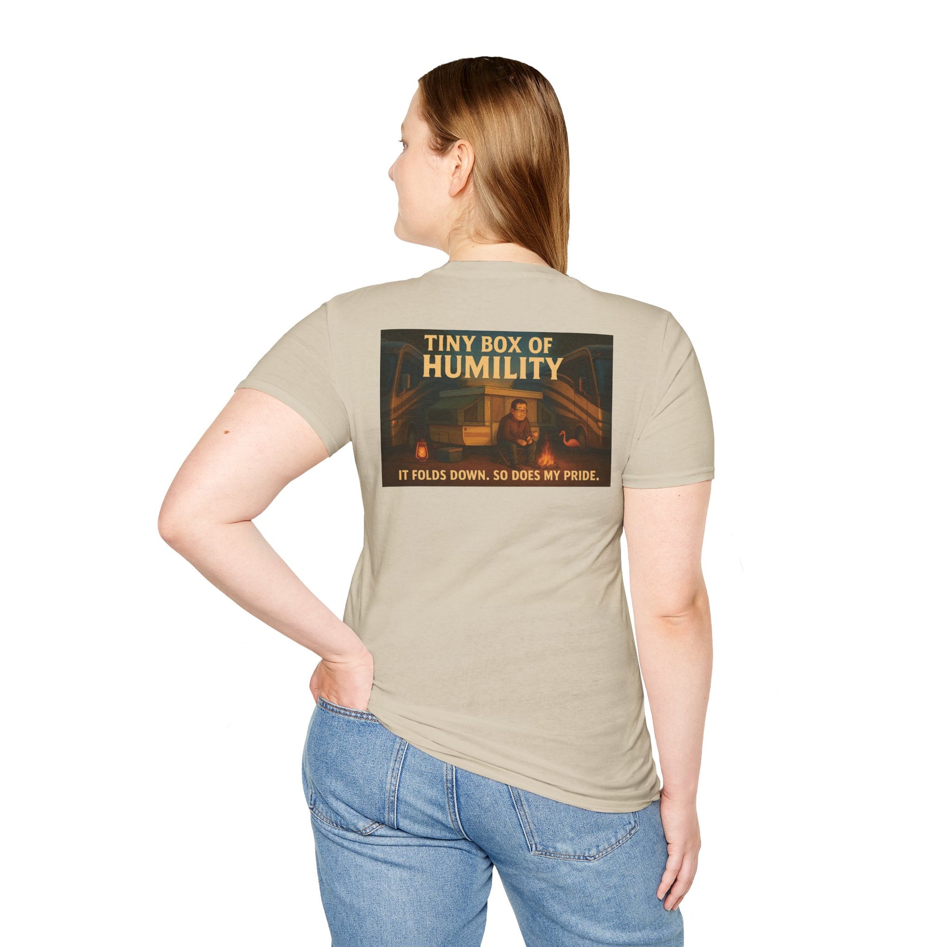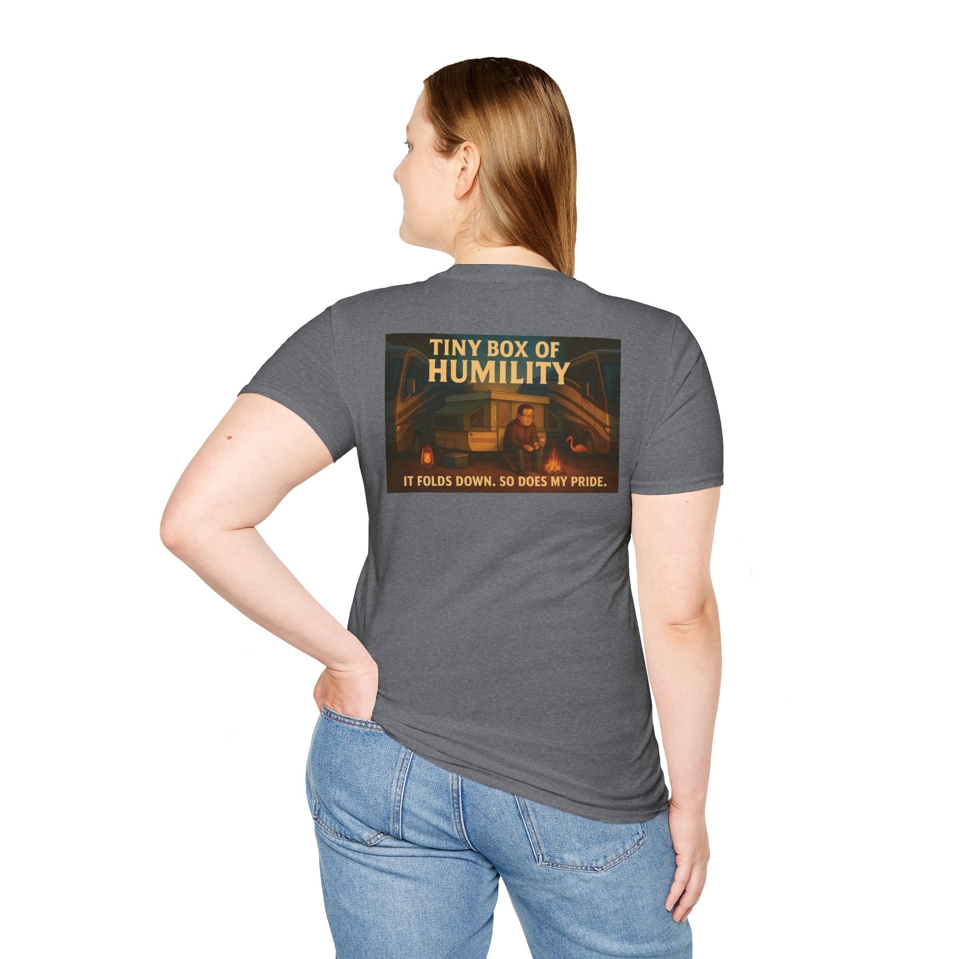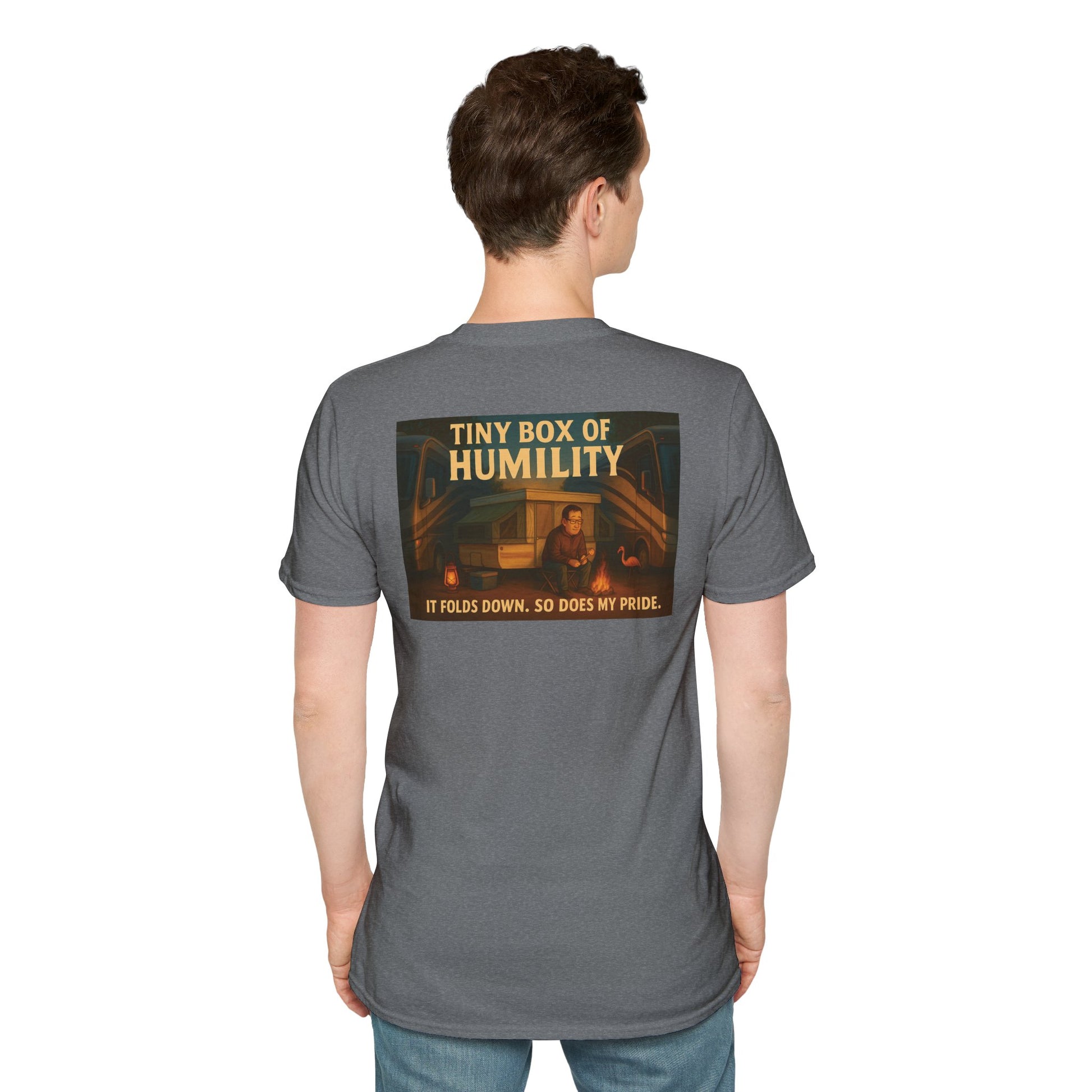 Not all campers are created equal. And that’s okay. The Tiny Box of Humility tee is for the brave souls hauling collapsible castles into a world of fifth wheels and toy haulers the size of mansions. It folds down—and so does your pride—but dang it, you’re still out there roasting marshmallows like a legend.