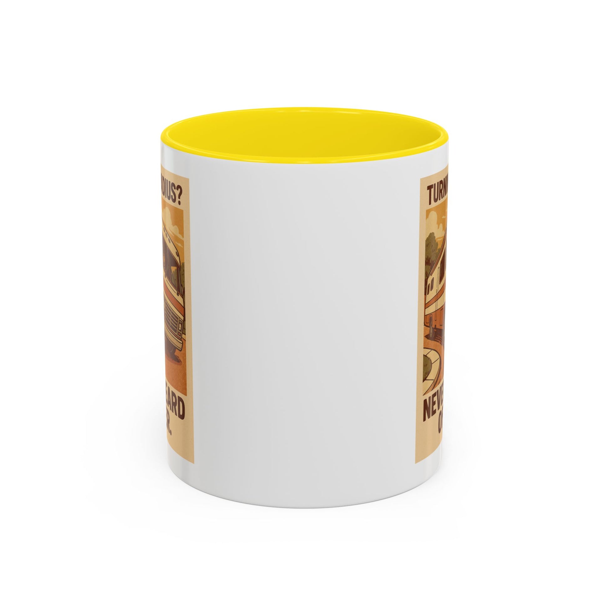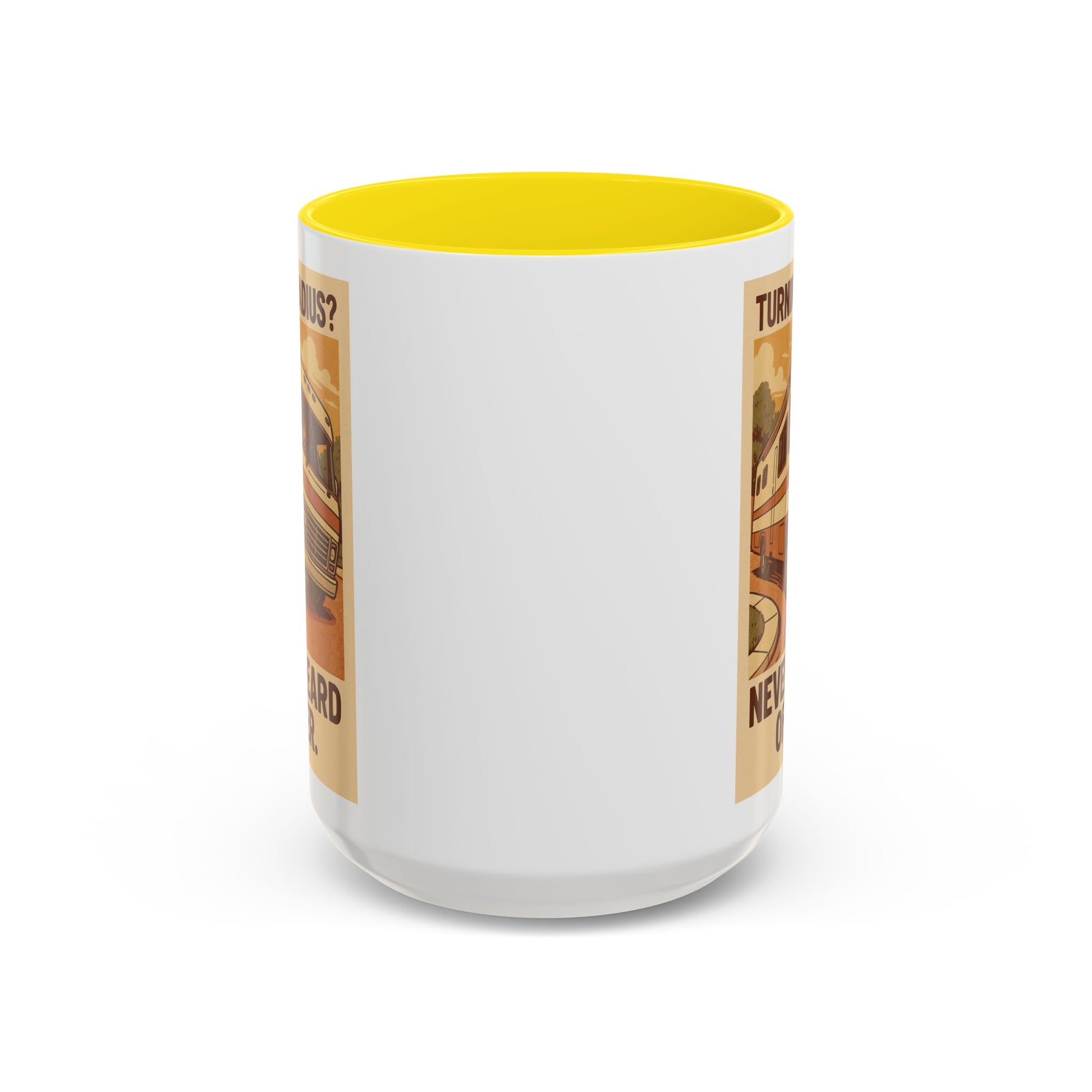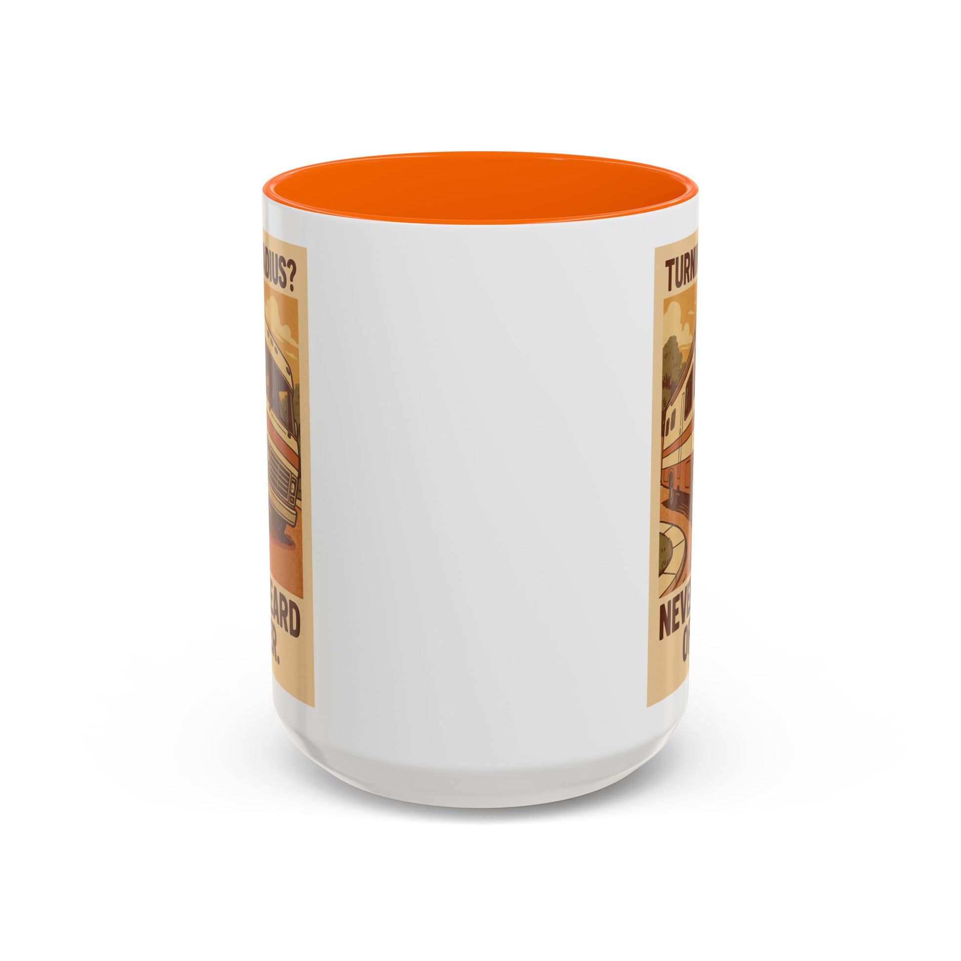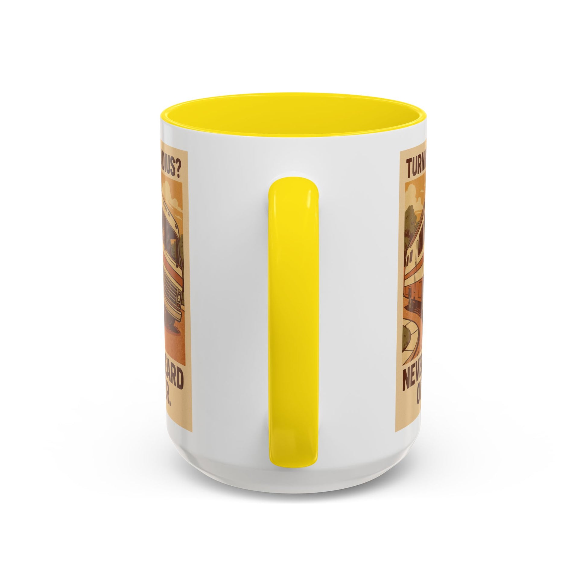 For the fearless road warriors piloting 40 feet of fiberglass and prayer, this mug is your new co-pilot. Featuring a vintage Class A motorhome and the iconic phrase "Turning Radius? Never Heard of Her," it's the perfect tribute to wide turns, narrow roads, and your complete disregard for spatial limitations.