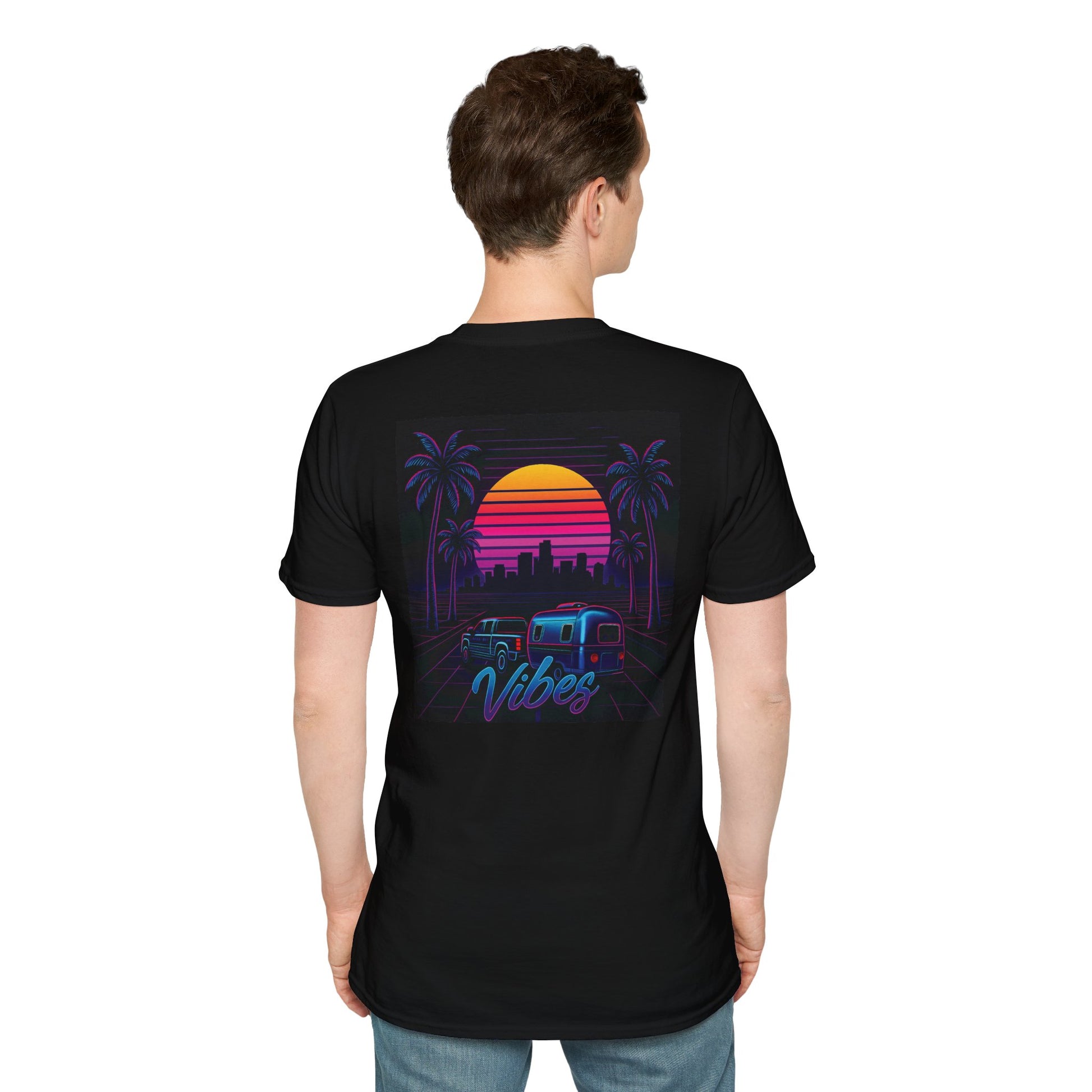 Cruise into another dimension of cool with the Vibes tee—your official uniform for rolling deep into neon sunsets, palm-lined highways, and campground synth parties no one invited you to (but you're going anyway).
