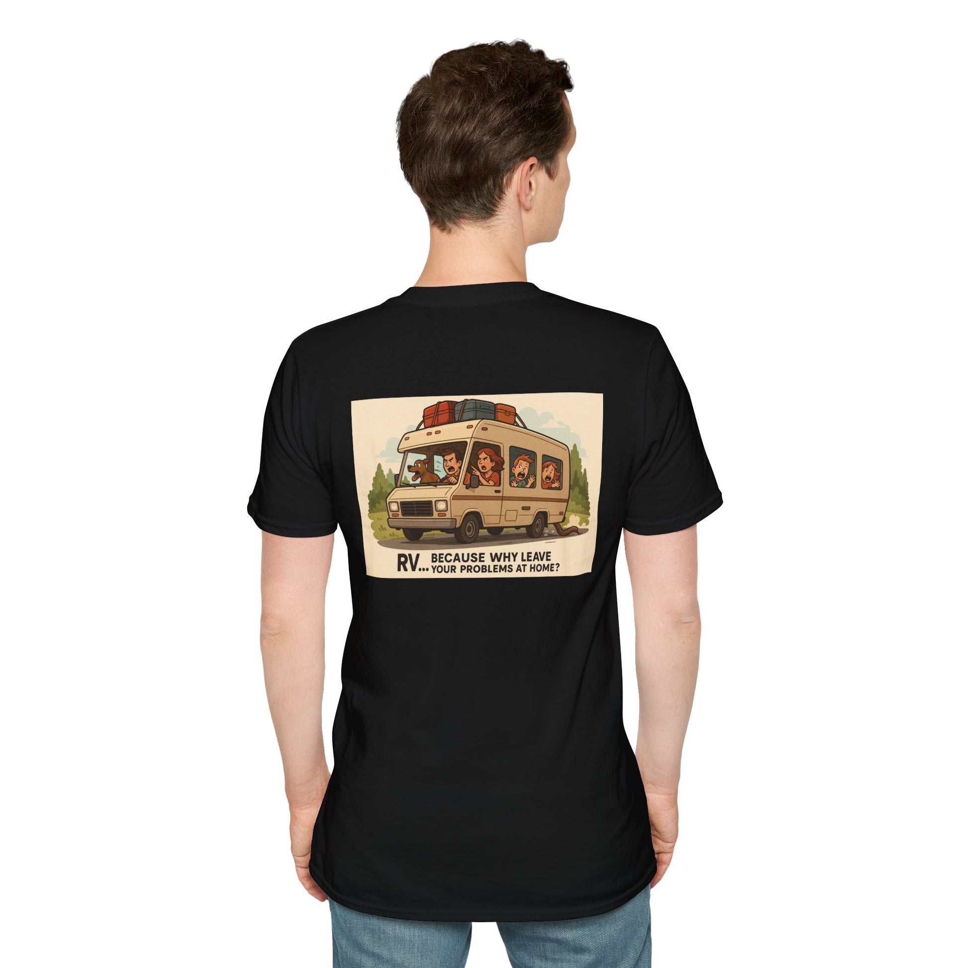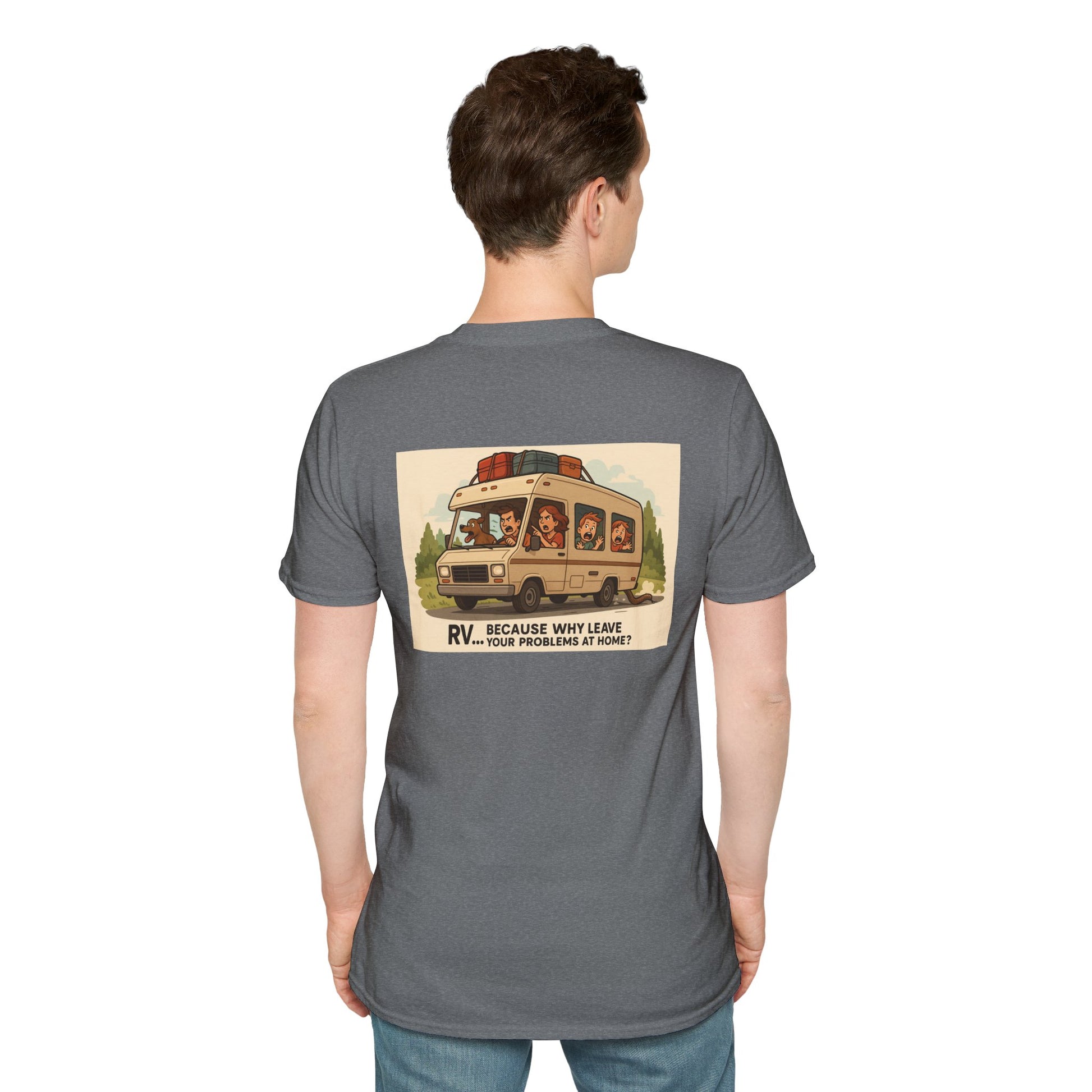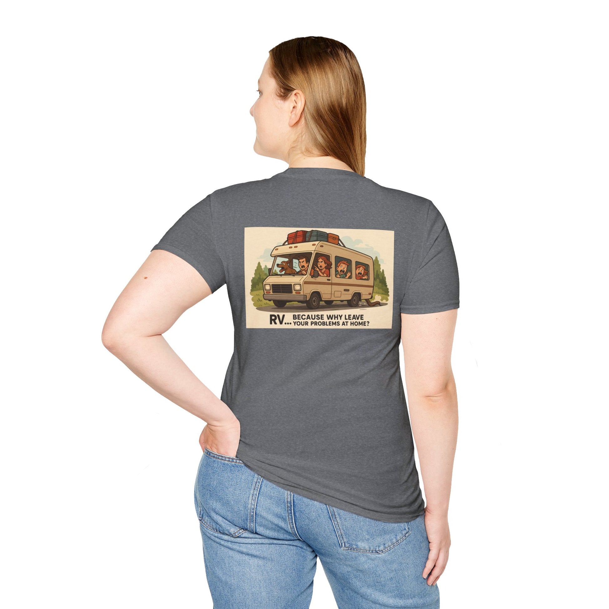 For the RV family who thought hitting the road would solve everything, only to discover that your problems are surprisingly portable and apparently love road trips, we present: The Why Leave Your Problems At Home Tee — because why leave your issues at home when they fit so nicely in the overhead compartments?