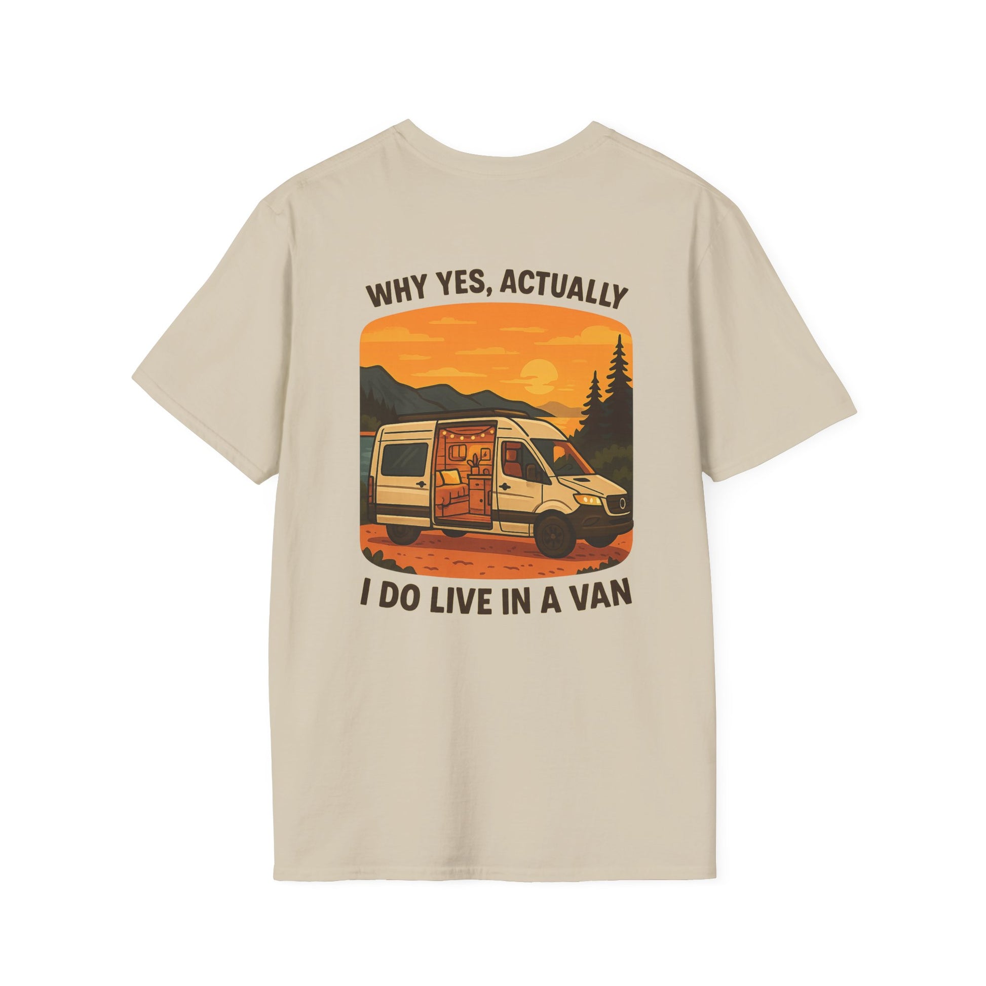 For the van lifer who's tired of awkwardly explaining their lifestyle choices at family gatherings and has decided to just wear the answer instead, we present: the Why Yes, Actually I Do Live in a Van tee. Because when people ask that question with that tone, sometimes the best response is just pointing at your shirt and walking away.