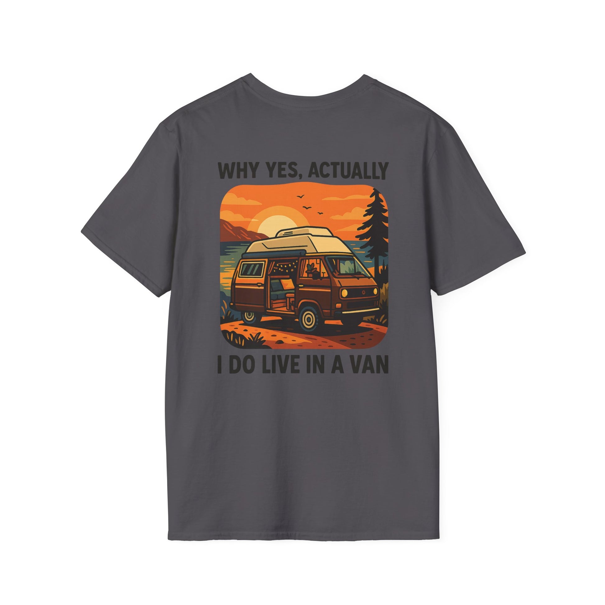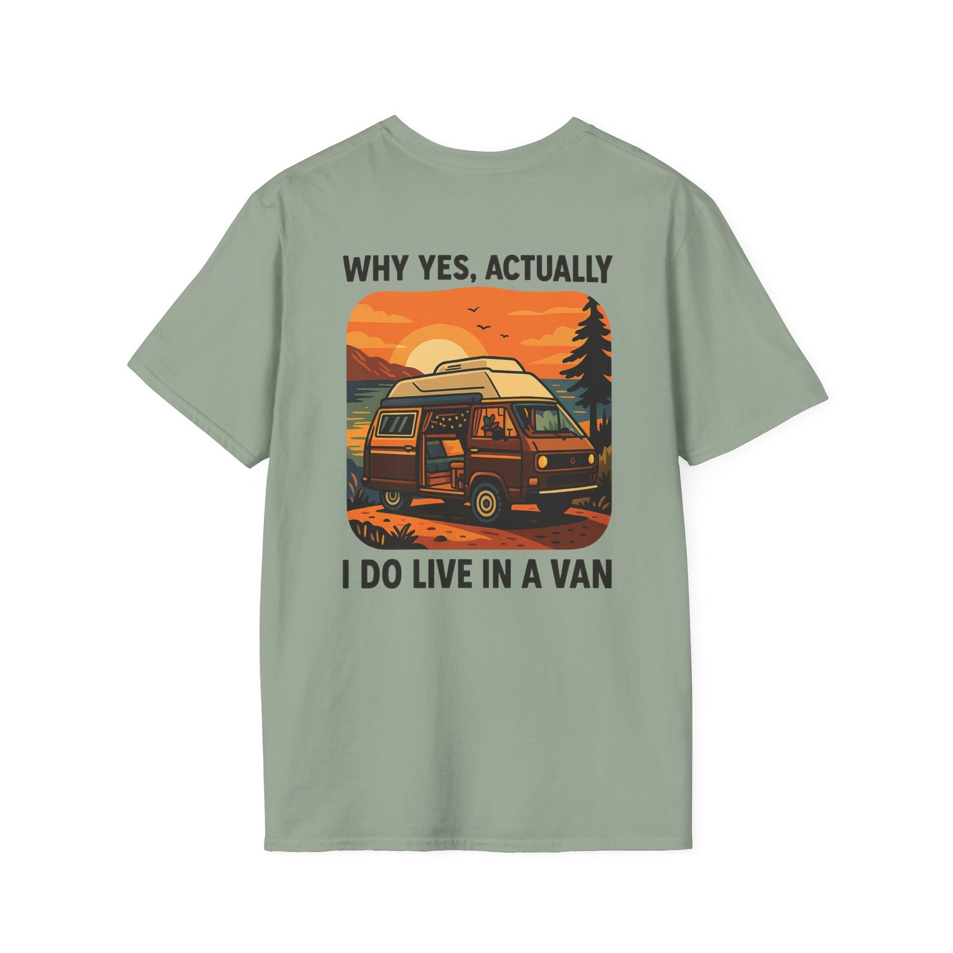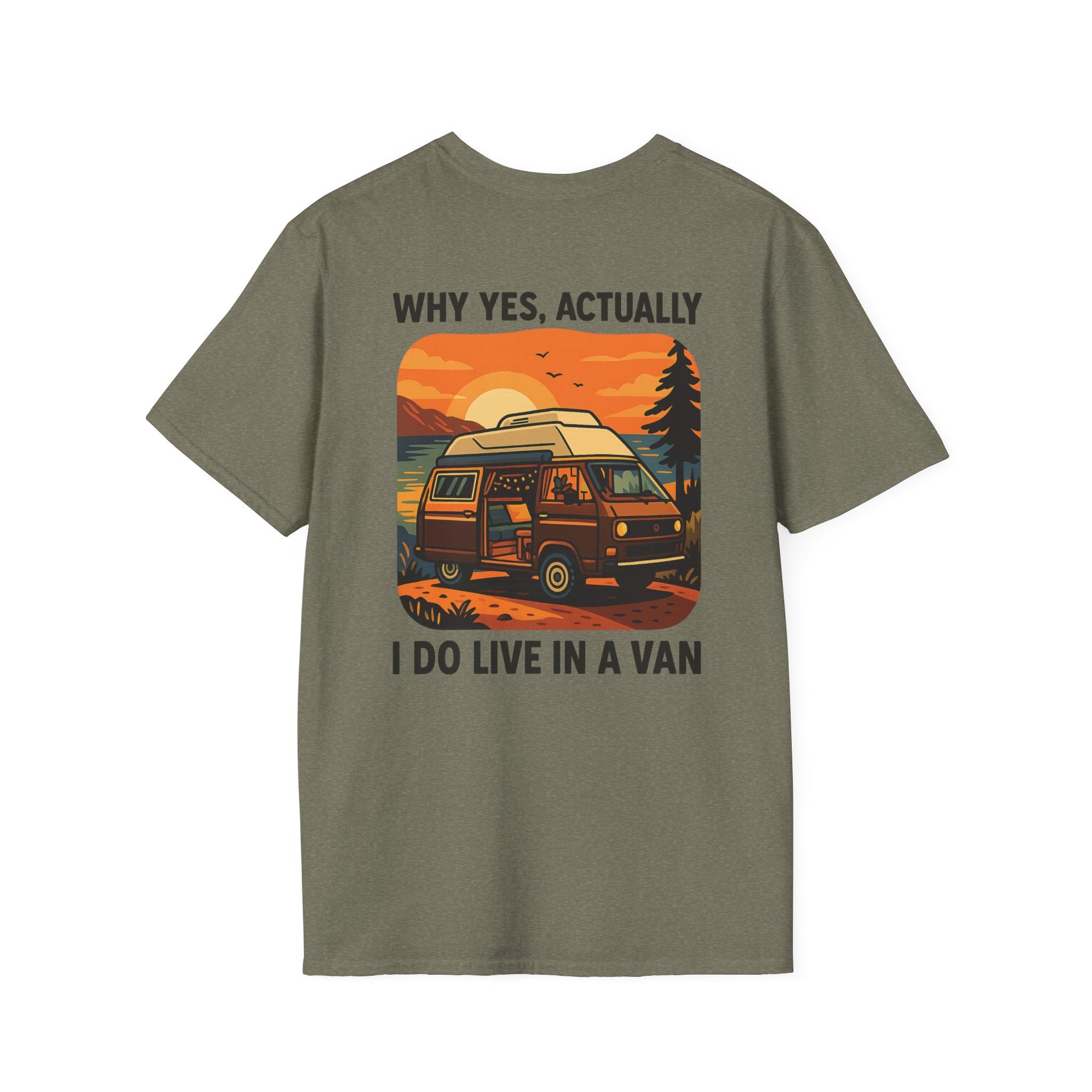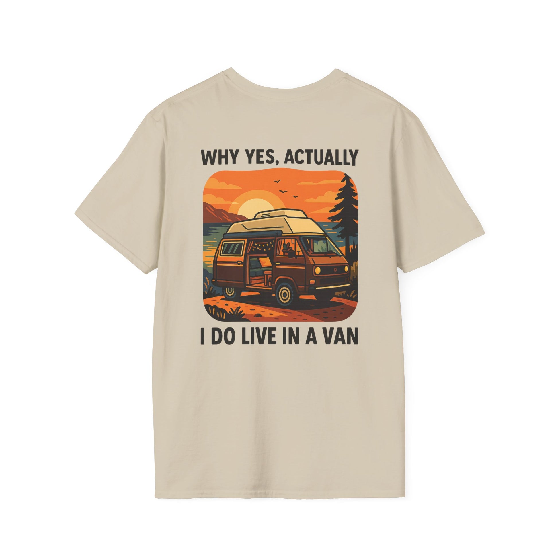 For the adventurer who traded rent payments for trail access and discovered that home isn't a place with an address, it's wherever you park with a good view and your dog, we present: the Why Yes, Actually I Do Live in a Van tee. Because when people ask that question, you get to smile and know they're still stuck in traffic while you woke up at the lake.